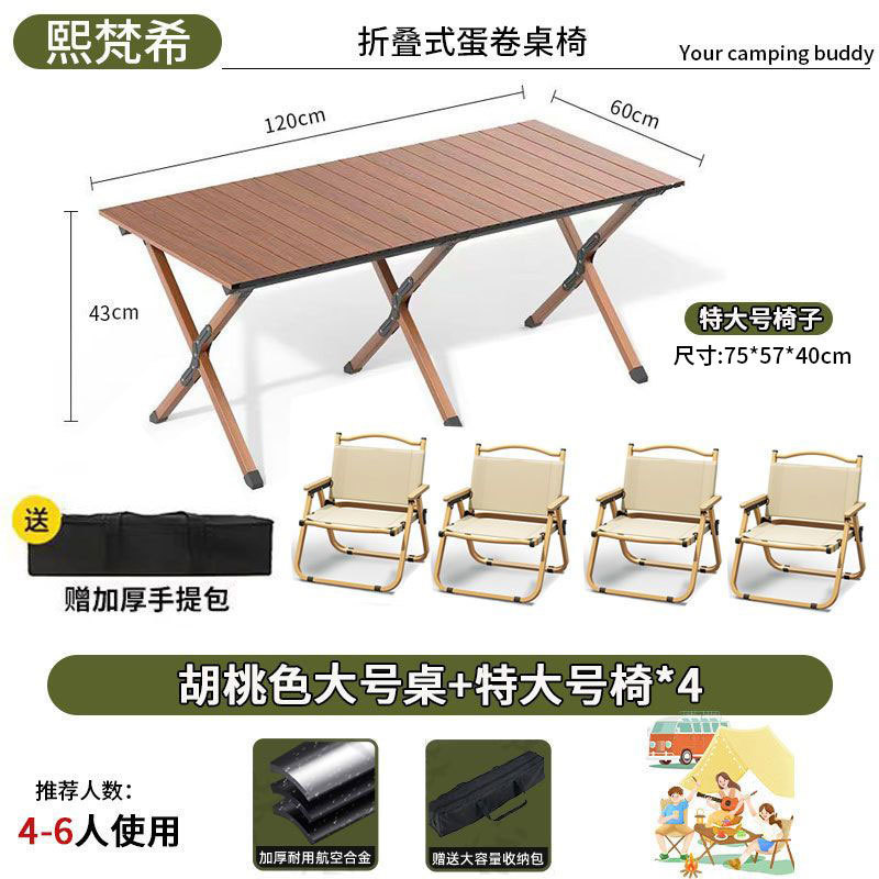 • Xifanxi+120CM 호두색 테이블+특대형 의자*4-[Xifanxi 공식 직판] 초경량 및 휴대성