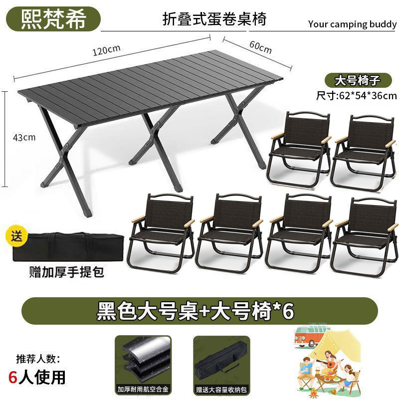 • Xifanxi+120CM 블랙 테이블+대형 의자*6-[Xifanxi 공식 직판] 초경량 및 휴대성