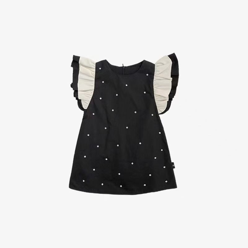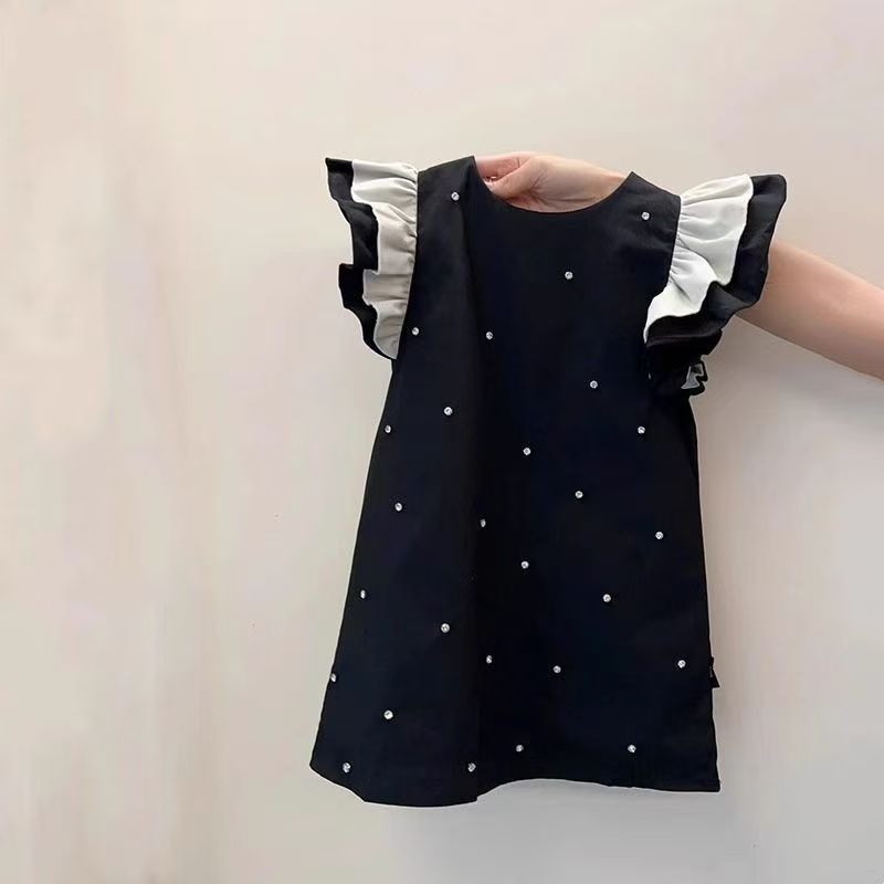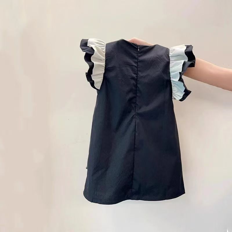 한국 어린이 착용 소녀의 원피스 여름 새로운 스타일 유행 달콤한 옷깃 비행 소매 작은 검은 원피스 A-라인 원피스스토어 가기