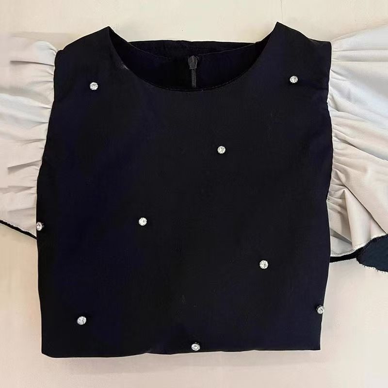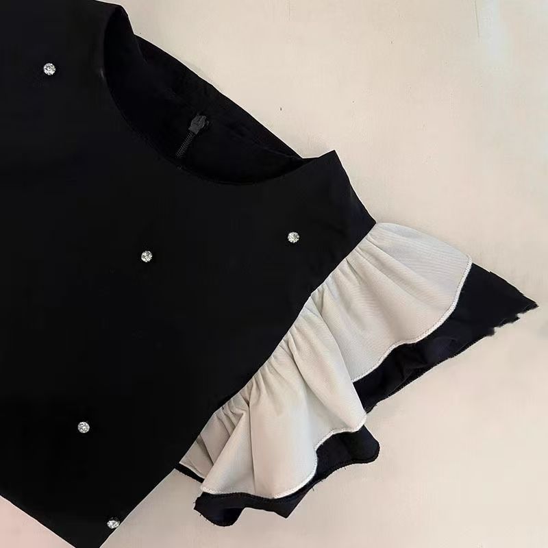 한국 어린이 착용 소녀의 원피스 여름 새로운 스타일 유행 달콤한 옷깃 비행 소매 작은 검은 원피스 A-라인 원피스