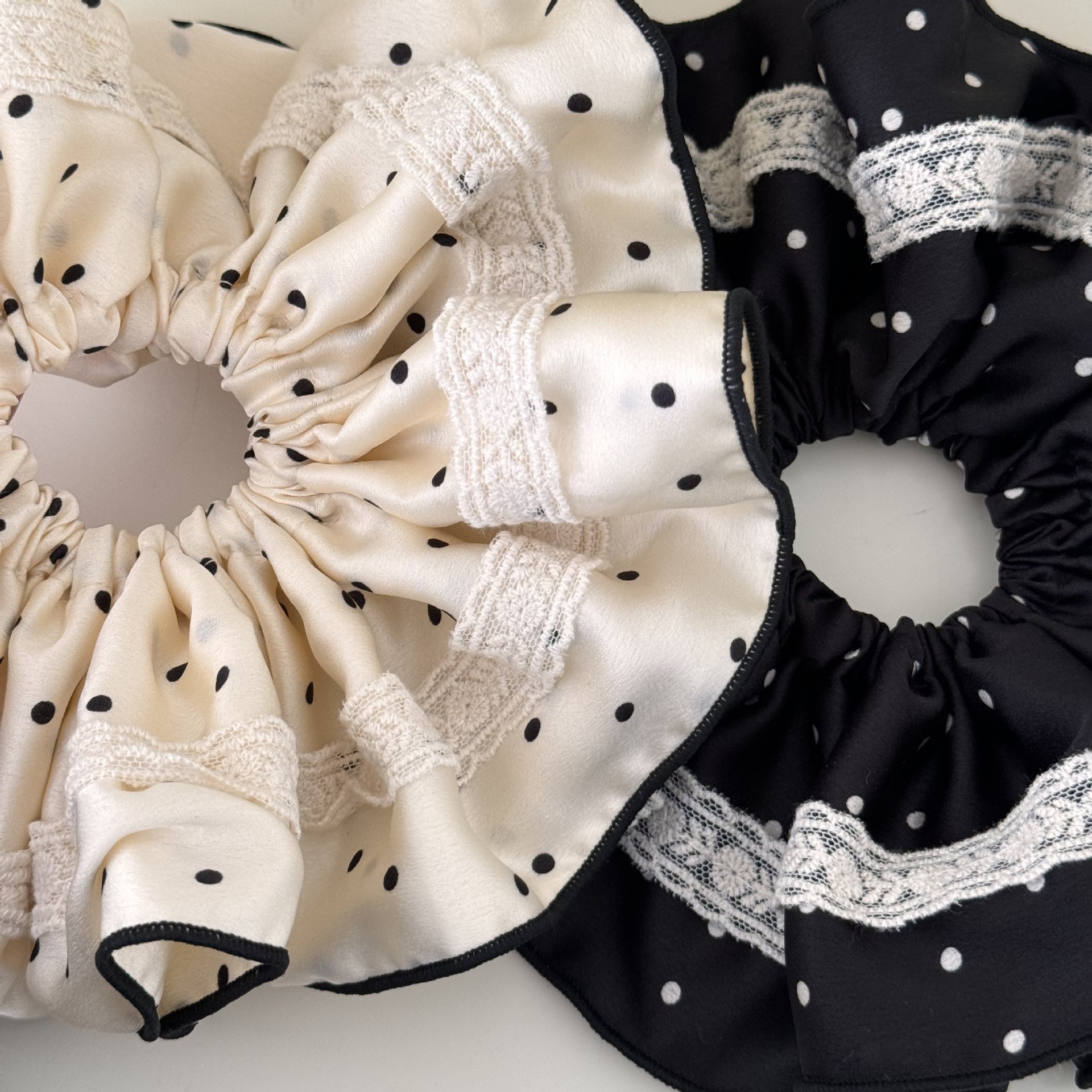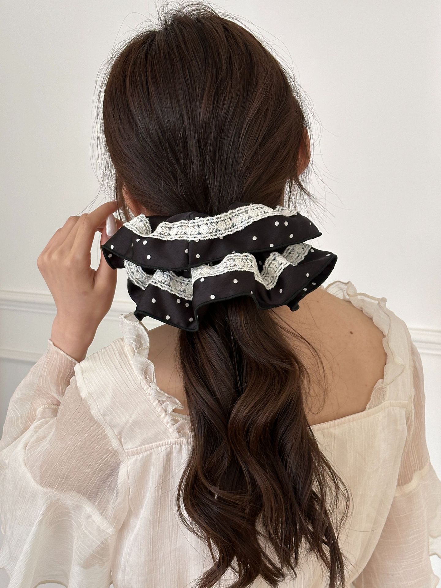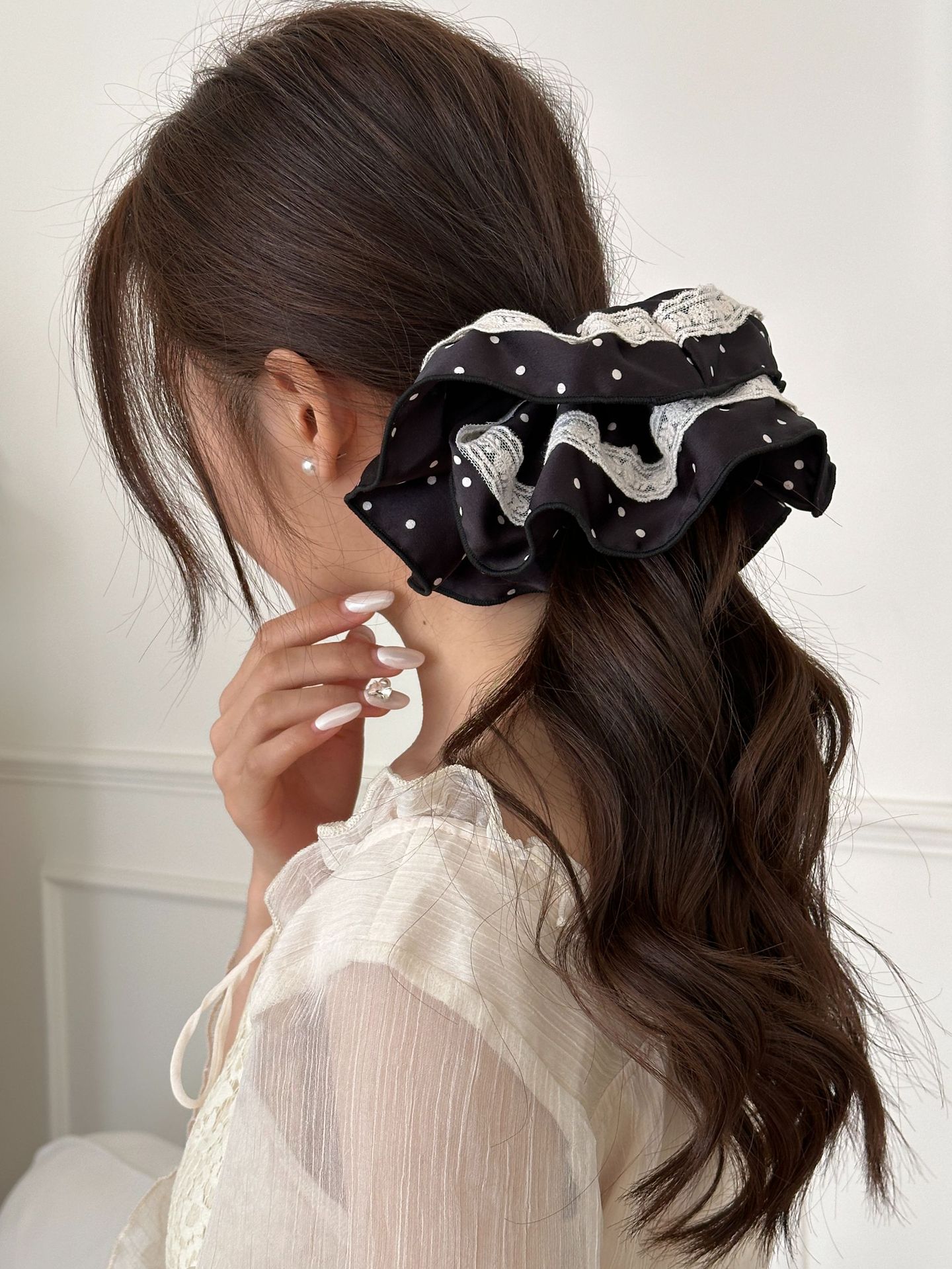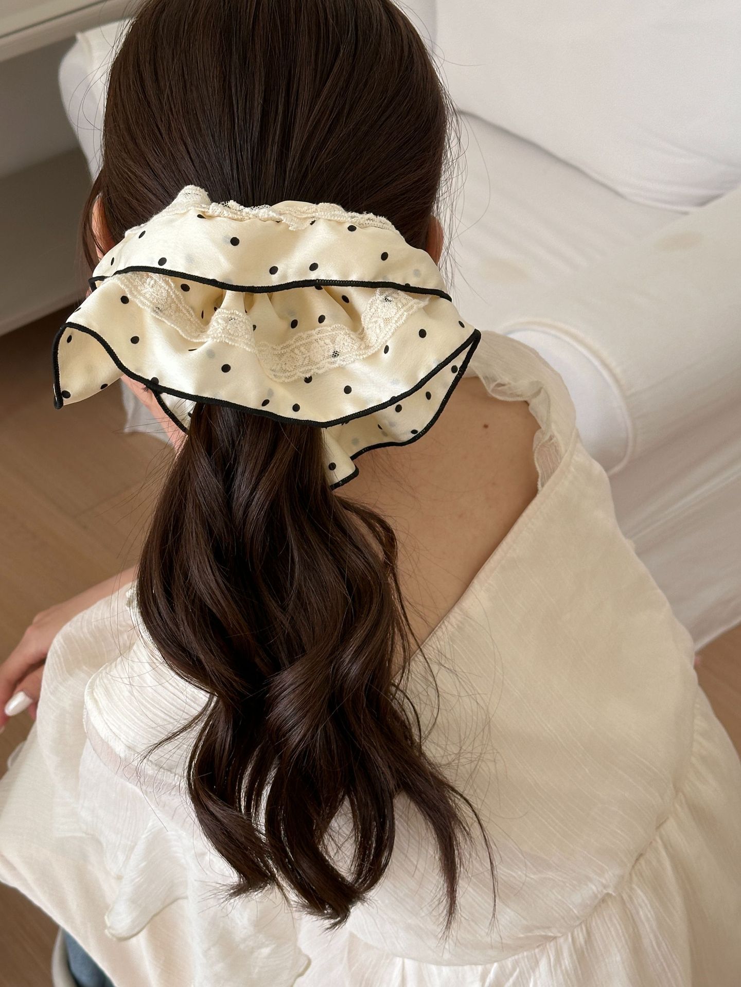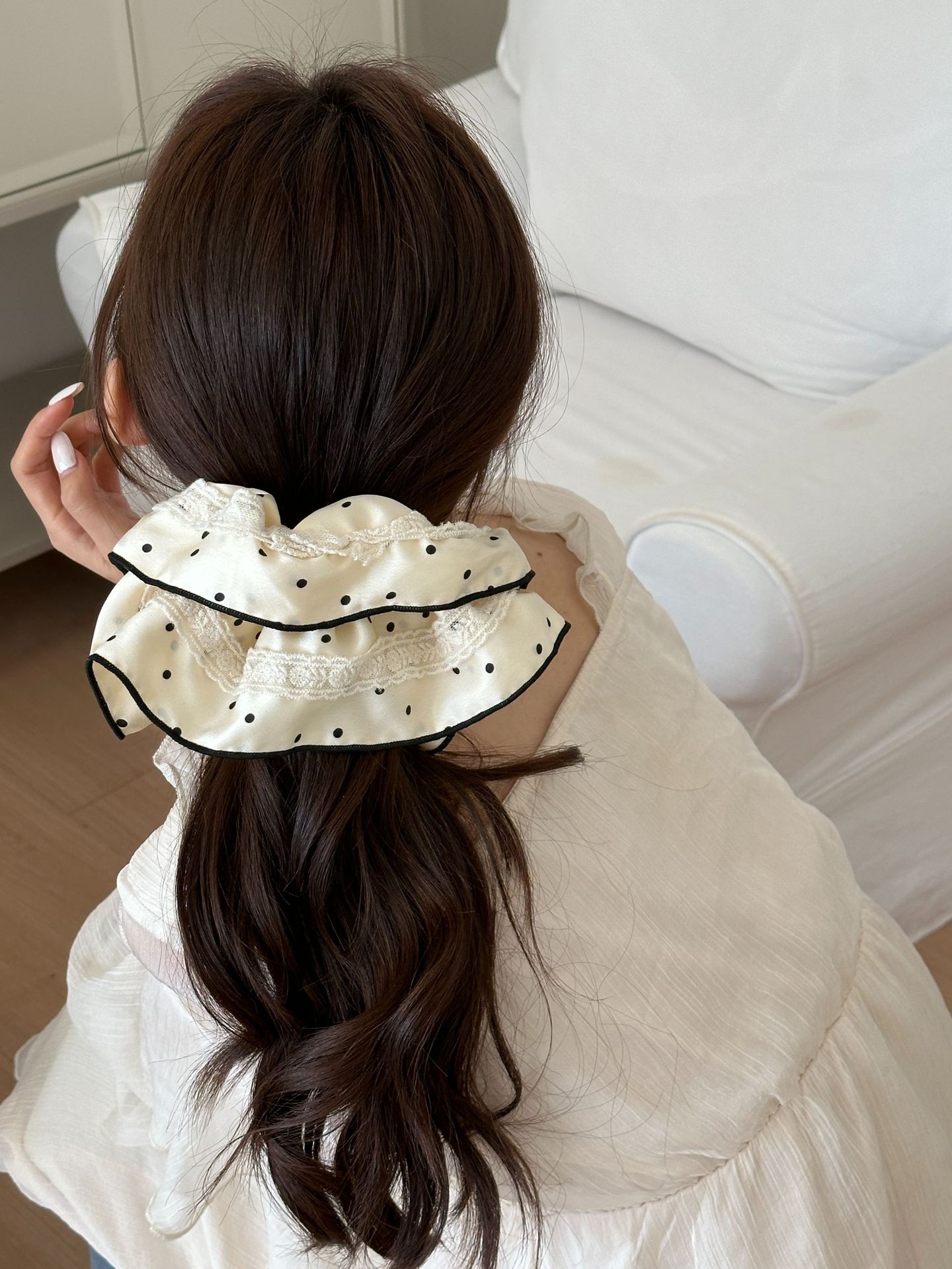 한국식 작은 향기, 부드러운 레이스, 폴카 도트 헤어밴드, 고급 새틴, 우아한 기질, 머리띠, 헤어끈