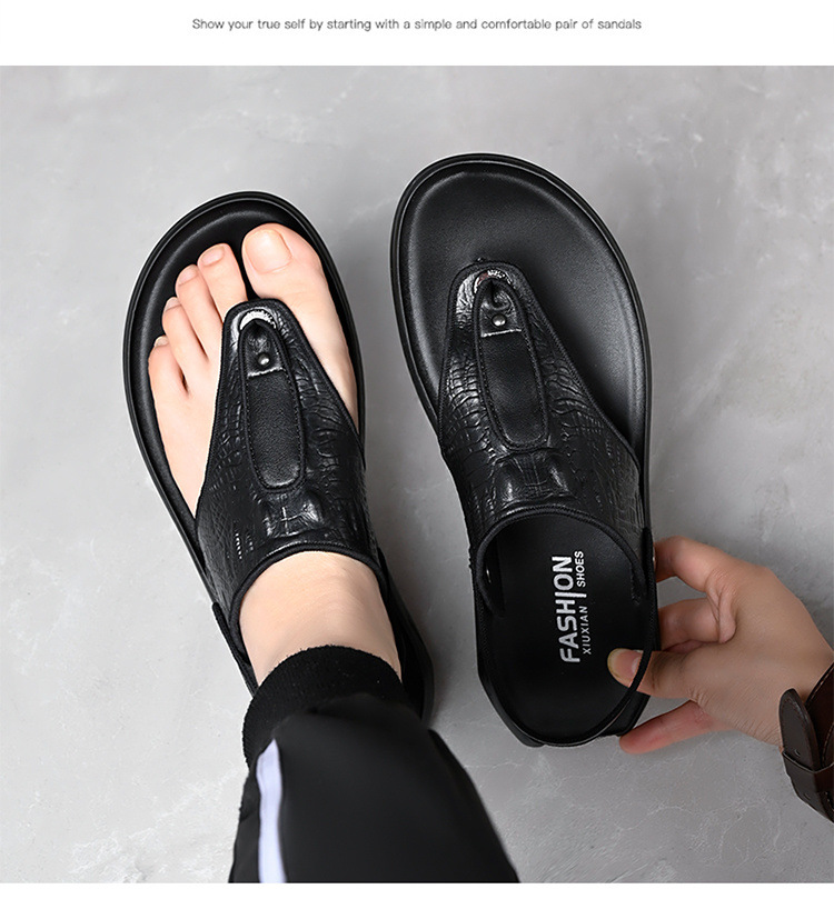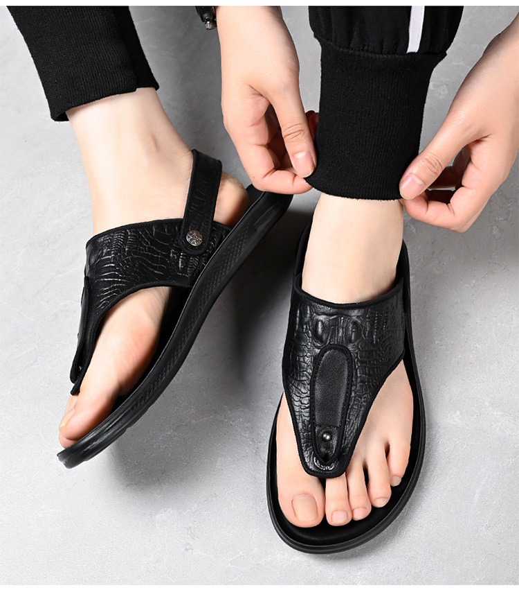 1층 소가죽 남성 샌들 여름 신작 캐주얼 비치 슈즈 남성용 미끄럼 방지 이중 목적 운전 슬리퍼