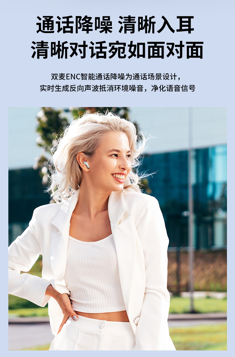 2025년형 J50 노이즈 캔슬링 미니 이어폰, 저전력, 긴 배터리 수명, 스테레오, 휴대용 블루투스, 해외 전용