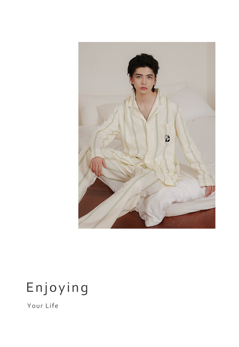 봄 녹색 수직 패턴 클래스 박테리아 퓨어 코튼 커플 잠옷 남자와 여자의 귀여운 팬더 긴 소매 홈 의류 세트스토어 가기