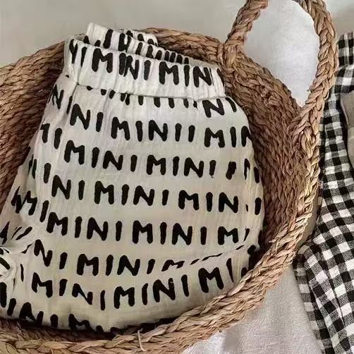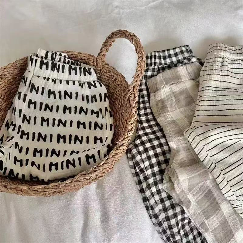 순면 거즈 모기 방지 바지 소년 바지 여름 얇은 통기성 한국어 문자 소녀 아기 어린이 긴 바지스토어 가기