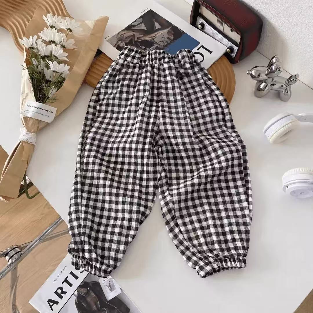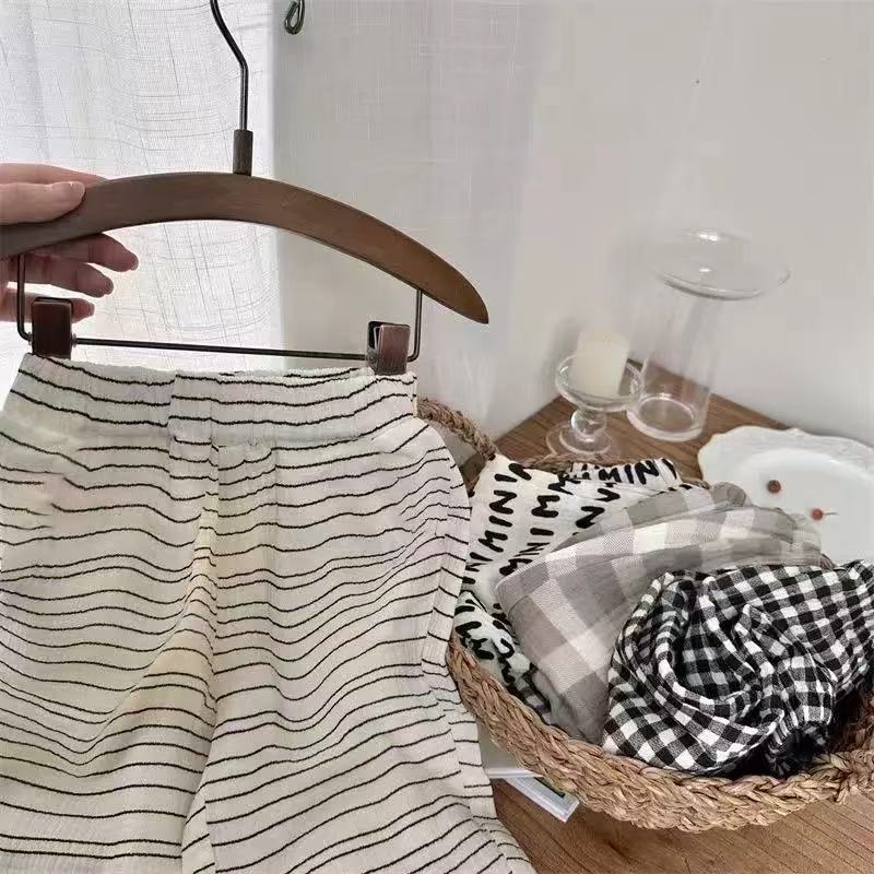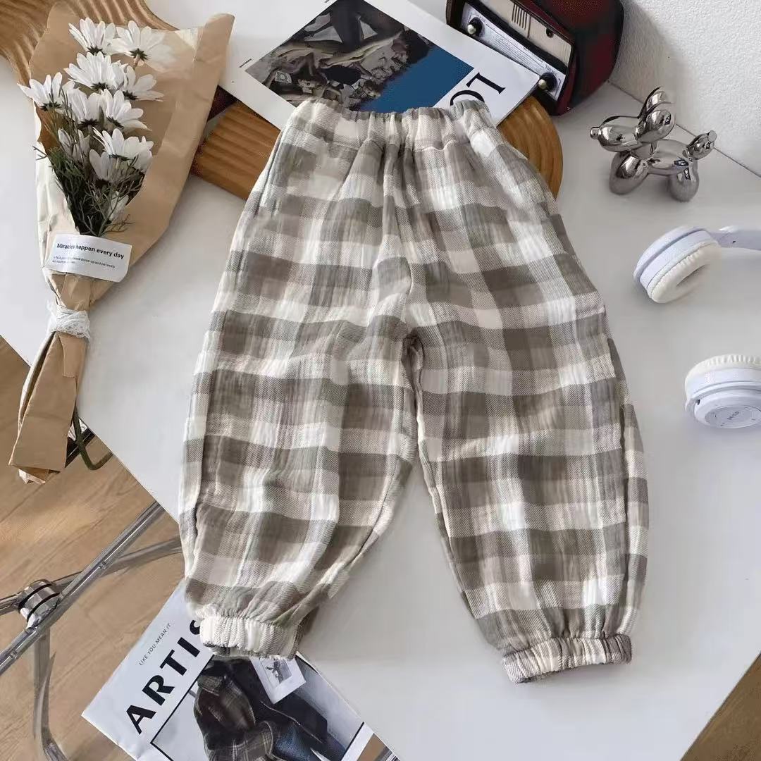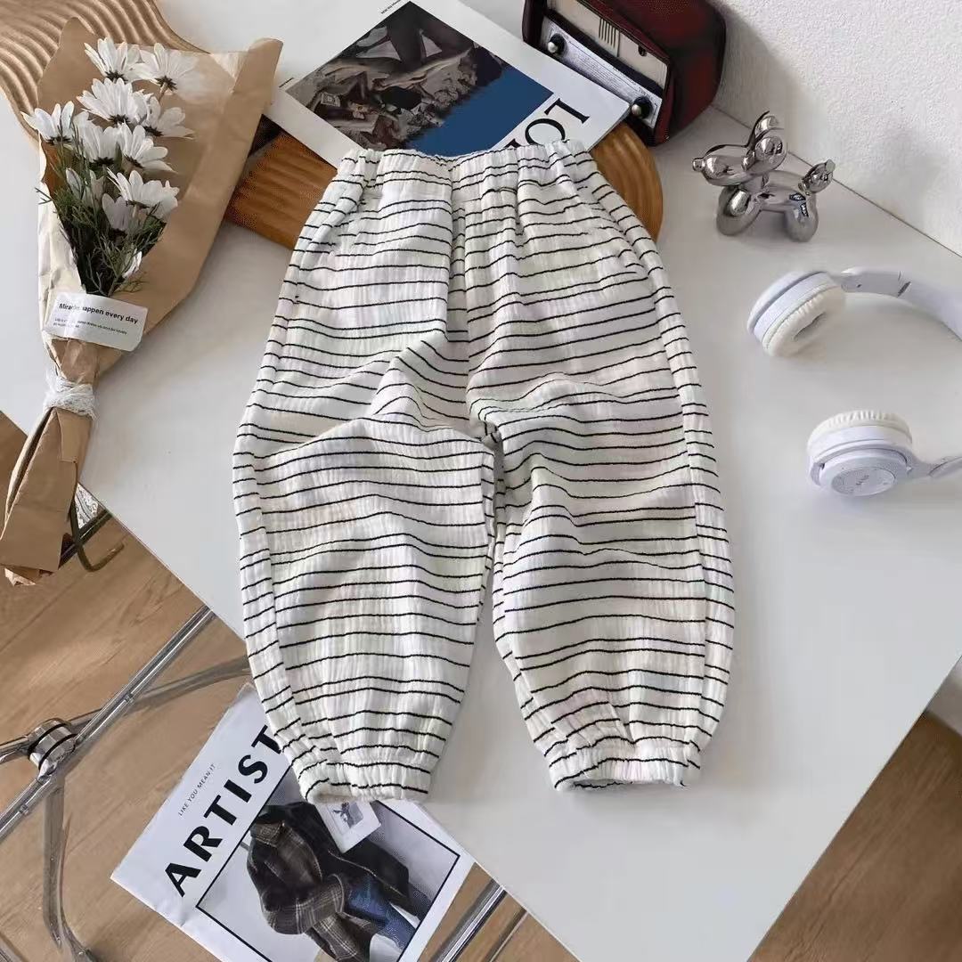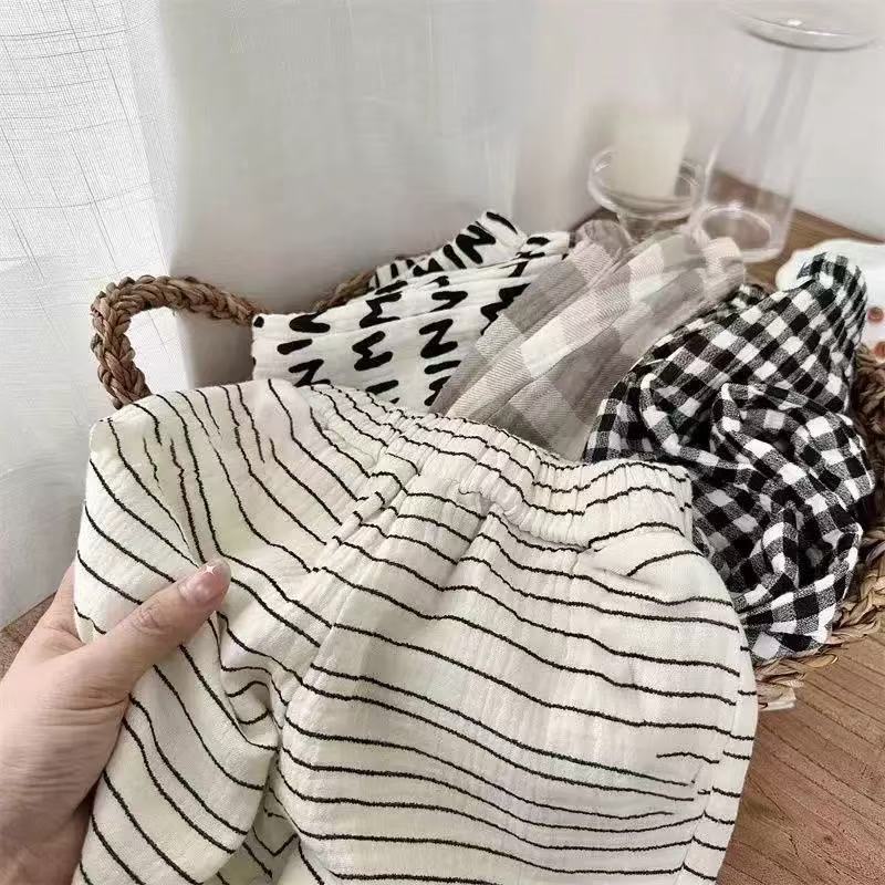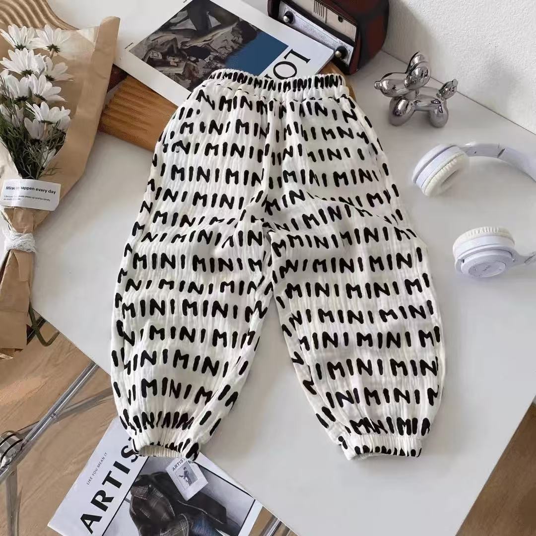 순면 거즈 모기 방지 바지 소년 바지 여름 얇은 통기성 한국어 문자 소녀 아기 어린이 긴 바지