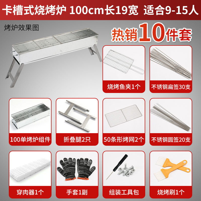바베큐 랙, 바베큐 그릴, 가정용 야외 숯불 바베큐 접이식 풀 세트, 숯불 크고 작은 야외 도구 세트스토어 가기