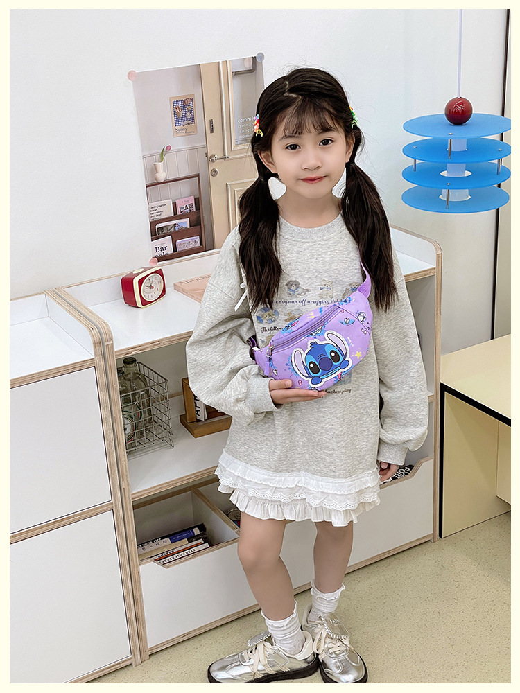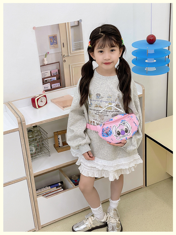 2025 새로운 어린이 가방 소년과 소녀 귀여운 스티치 허리 가방 크로스 바디 가방 야외 캐주얼 패션 가슴 가방