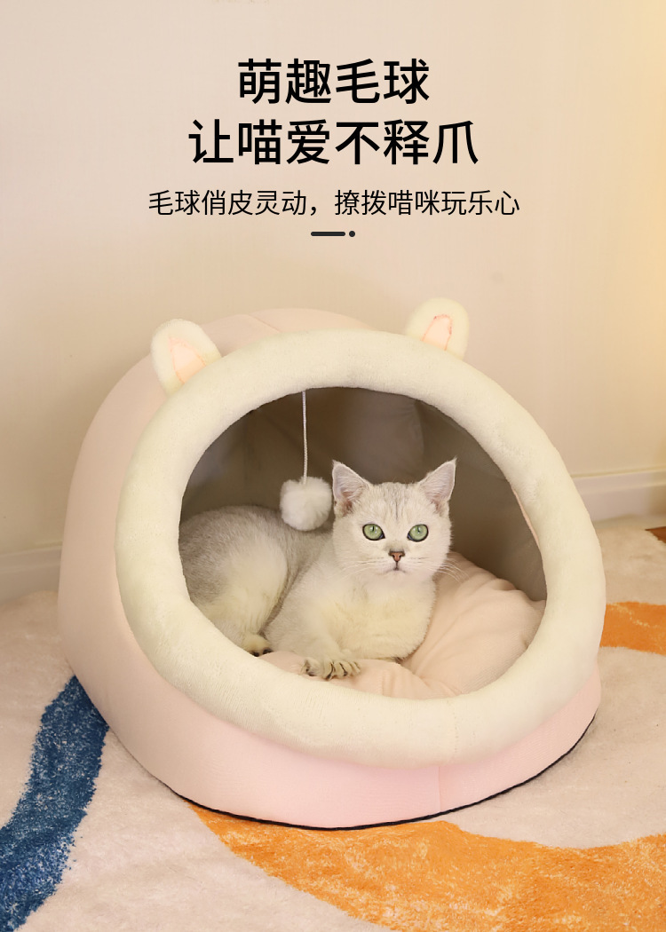 사계절 고양이 둥지, 귀여운 애완동물 둥지, 탈부착 및 세탁 가능한 집, 털볼이 있는 반밀폐형 고양이 집, 개집, 고양이 및 개 용품스토어 가기
