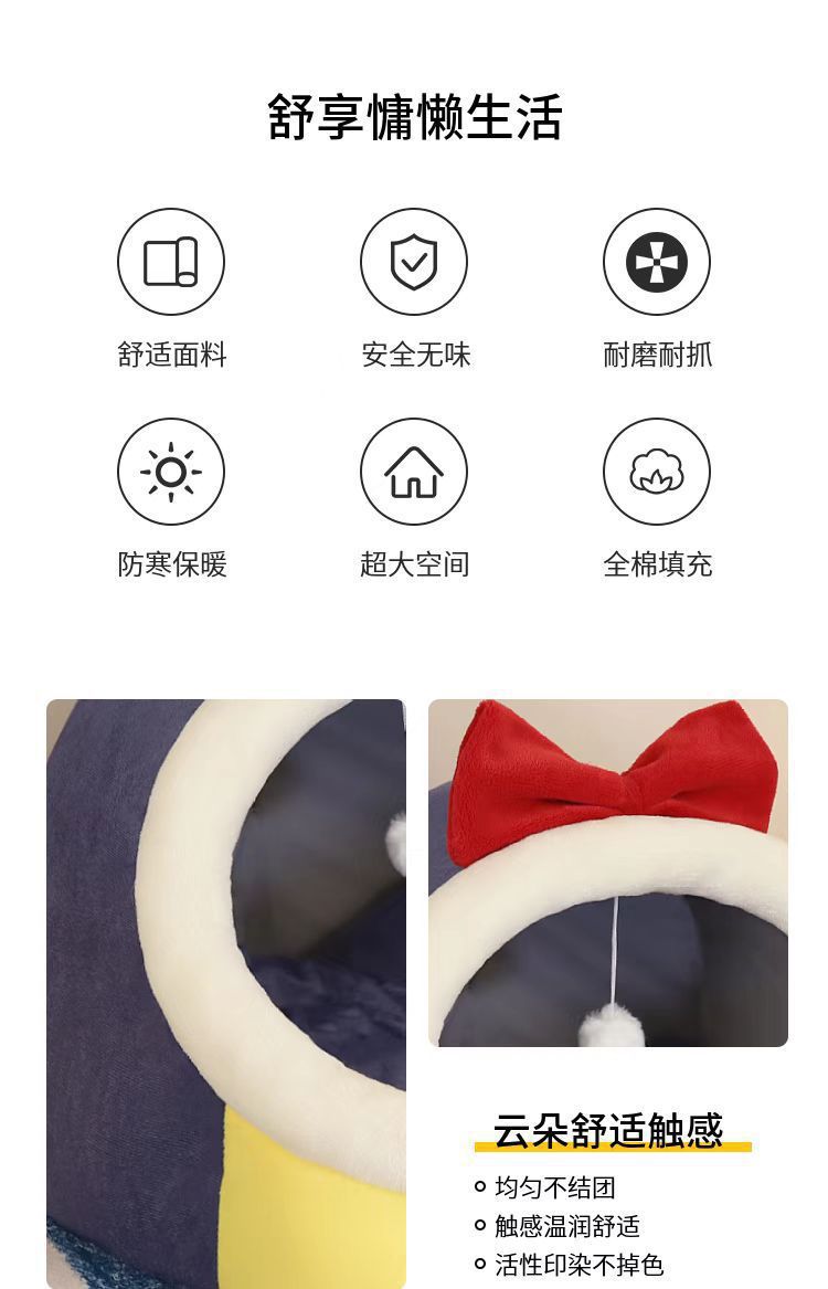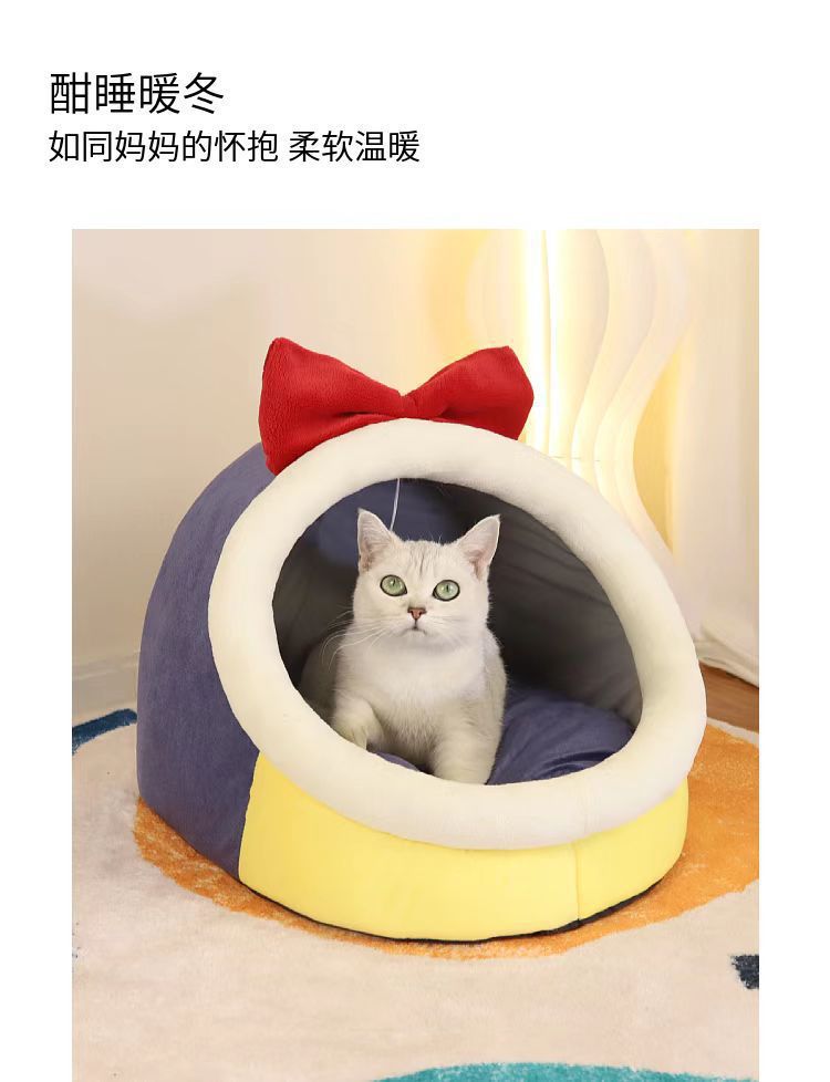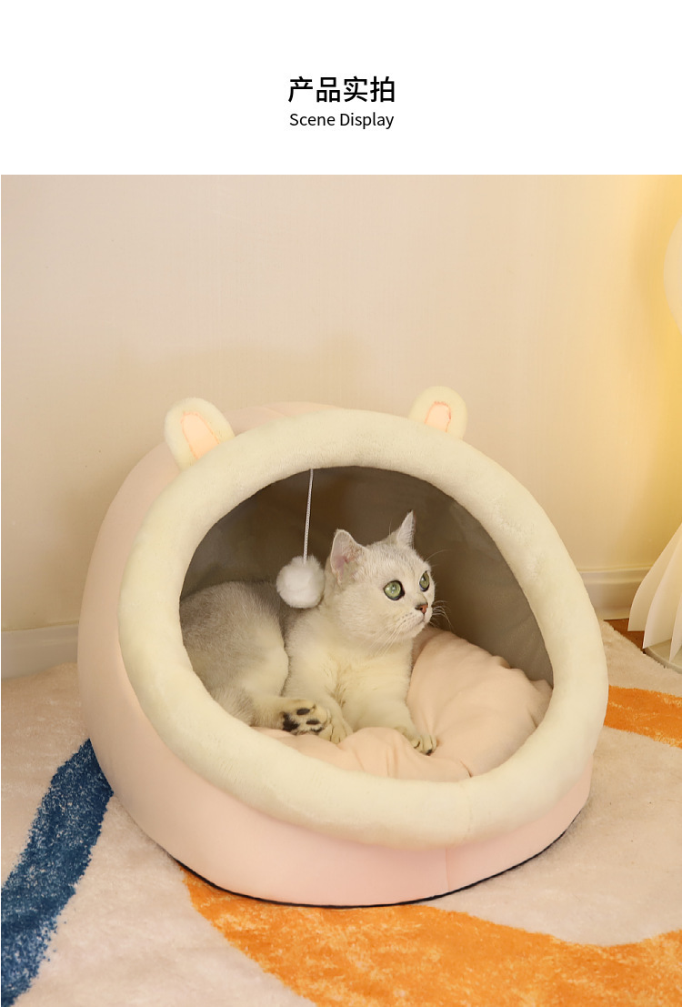 사계절 고양이 둥지, 귀여운 애완동물 둥지, 탈부착 및 세탁 가능한 집, 털볼이 있는 반밀폐형 고양이 집, 개집, 고양이 및 개 용품