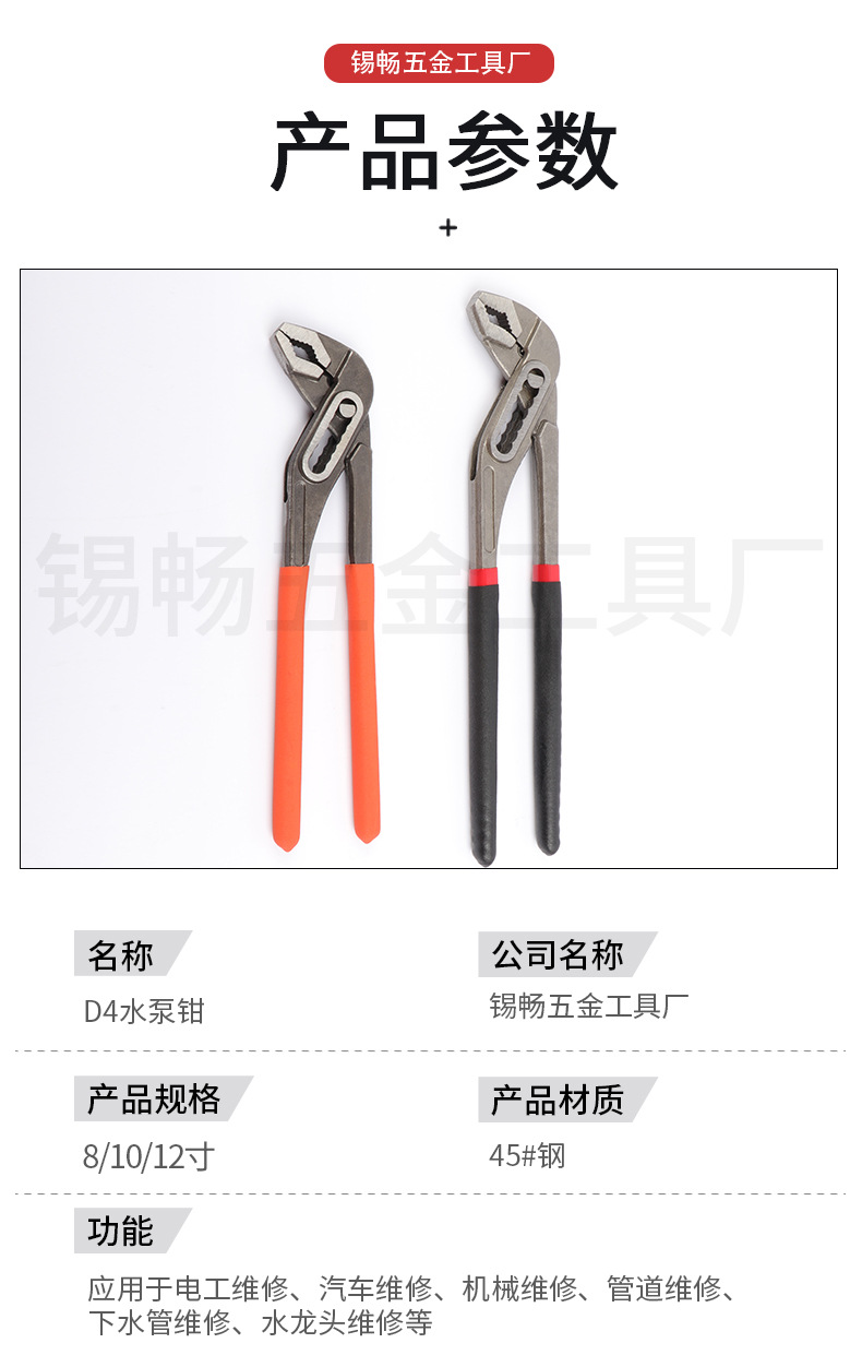 다기능 워터 펌프 펜치 8 인치 10 인치 12 인치 수도관 펜치 가정용 대형 오픈 욕실 펜치 제조업체 공급스토어 가기