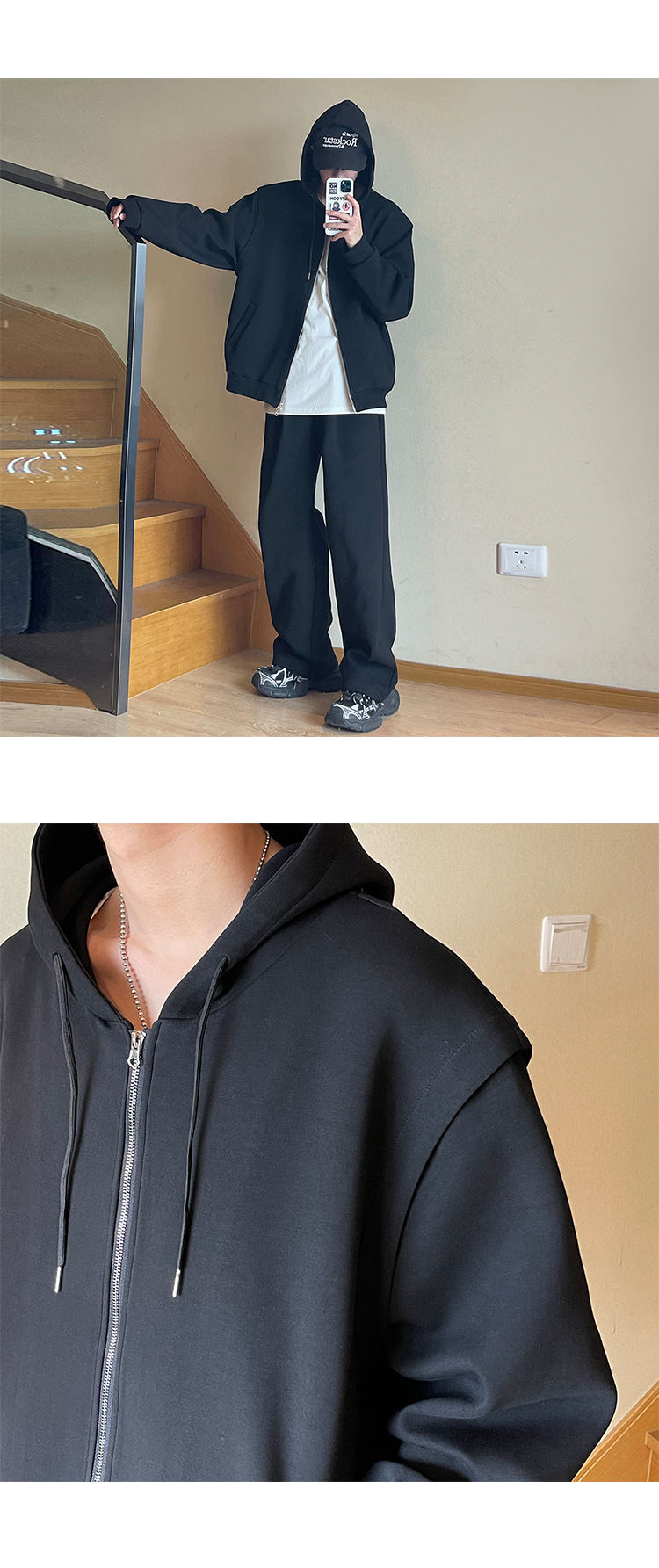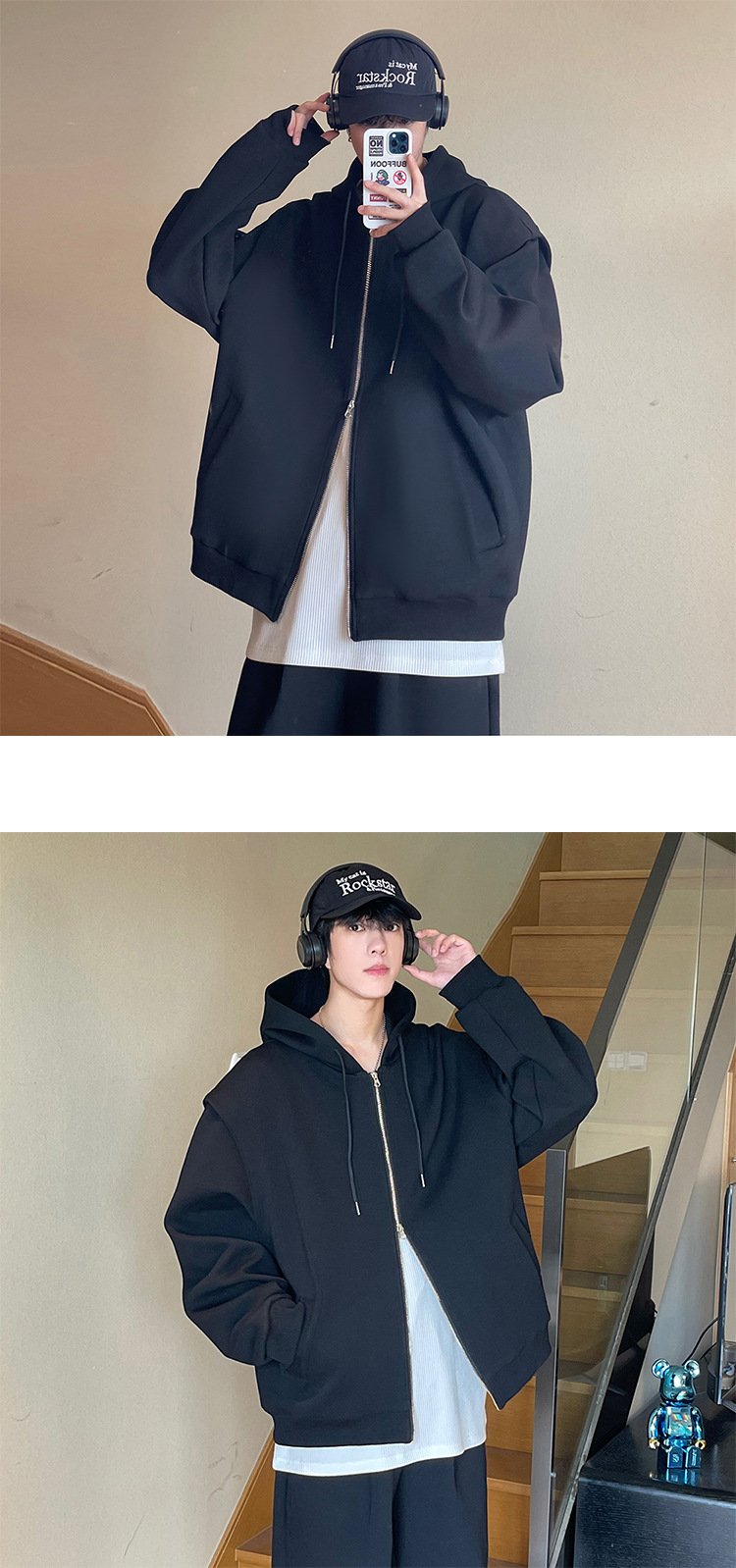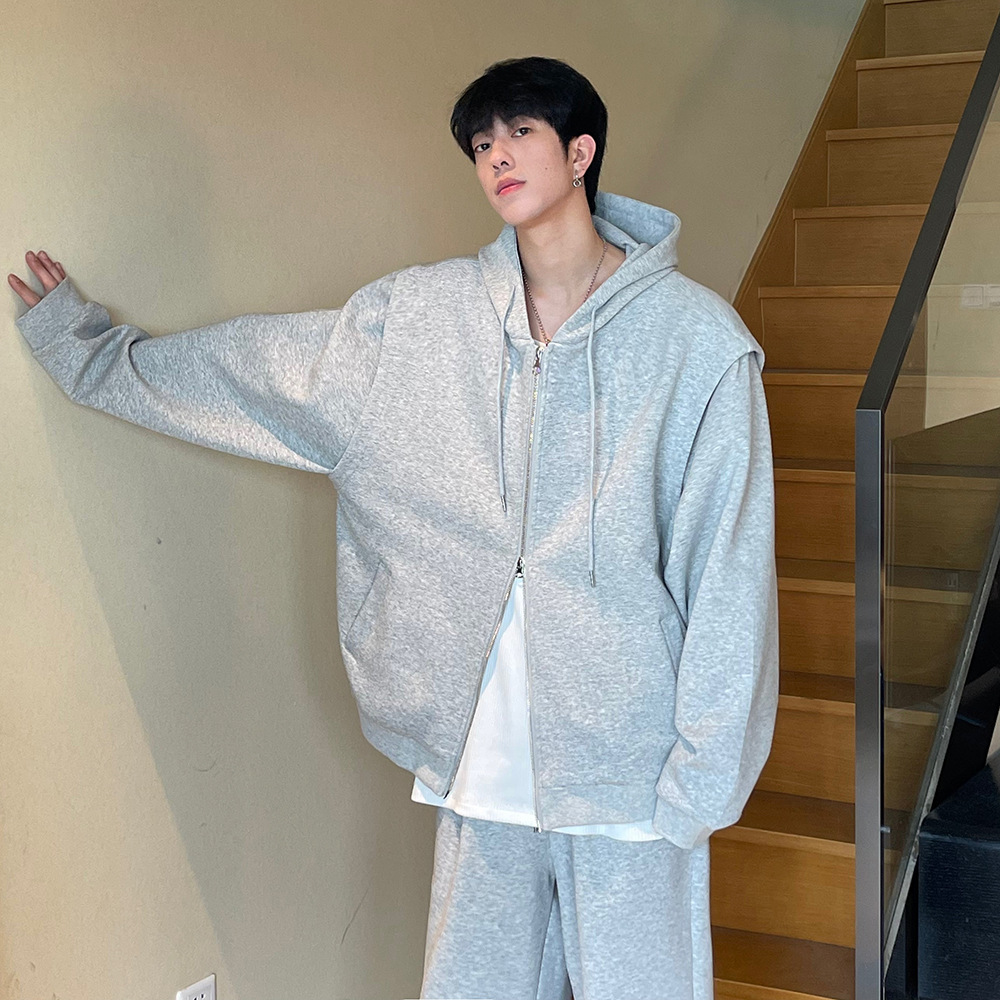 남성용 미국 트렌디 브랜드 후드 카디건 스웨트 셔츠 2024 봄, 가을 새로운 짧은 어깨 패드 캐주얼 스포츠 코트 탑스토어 가기