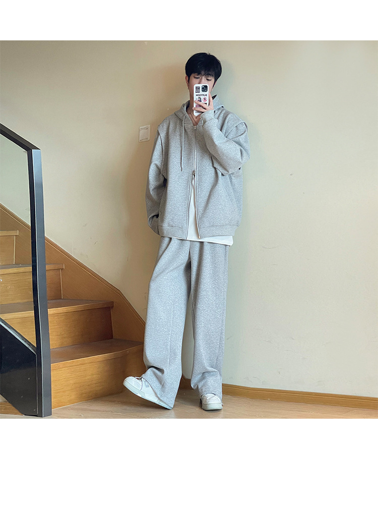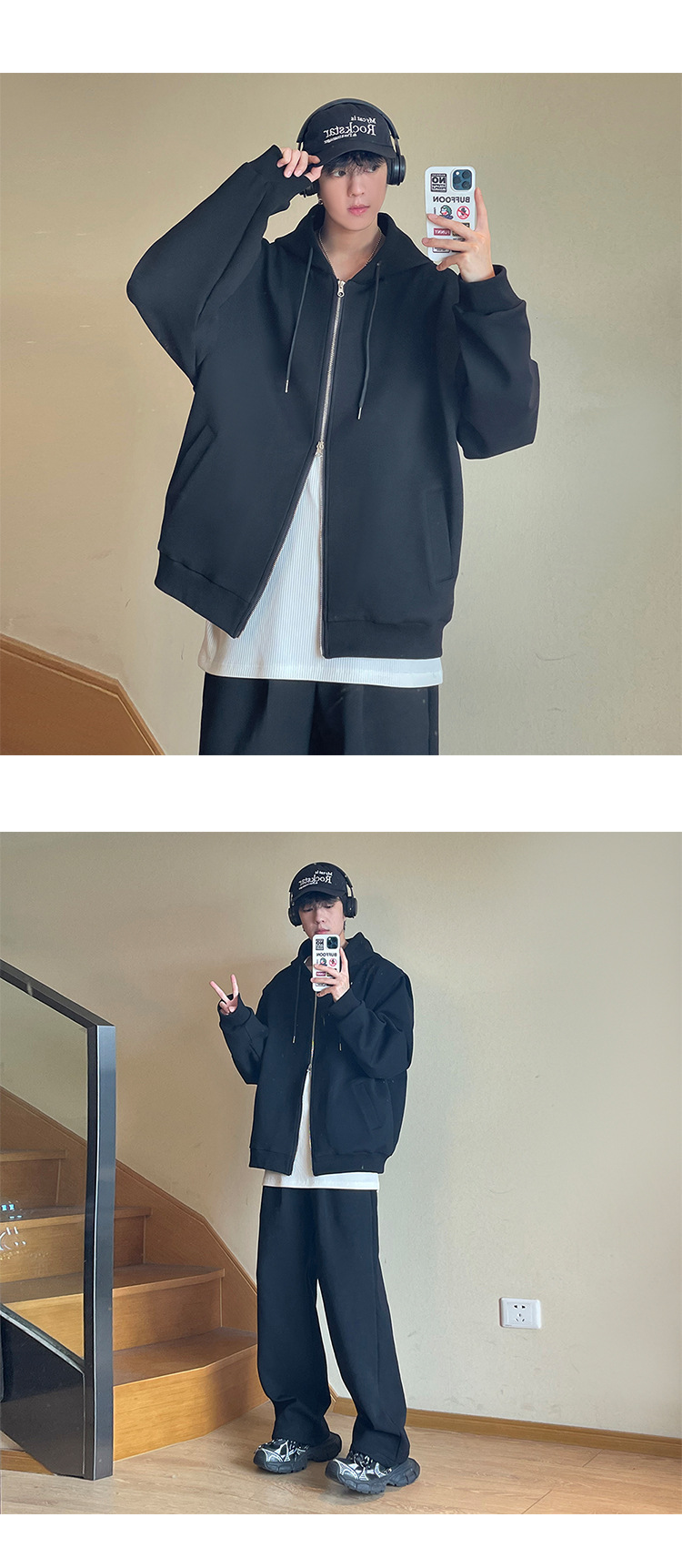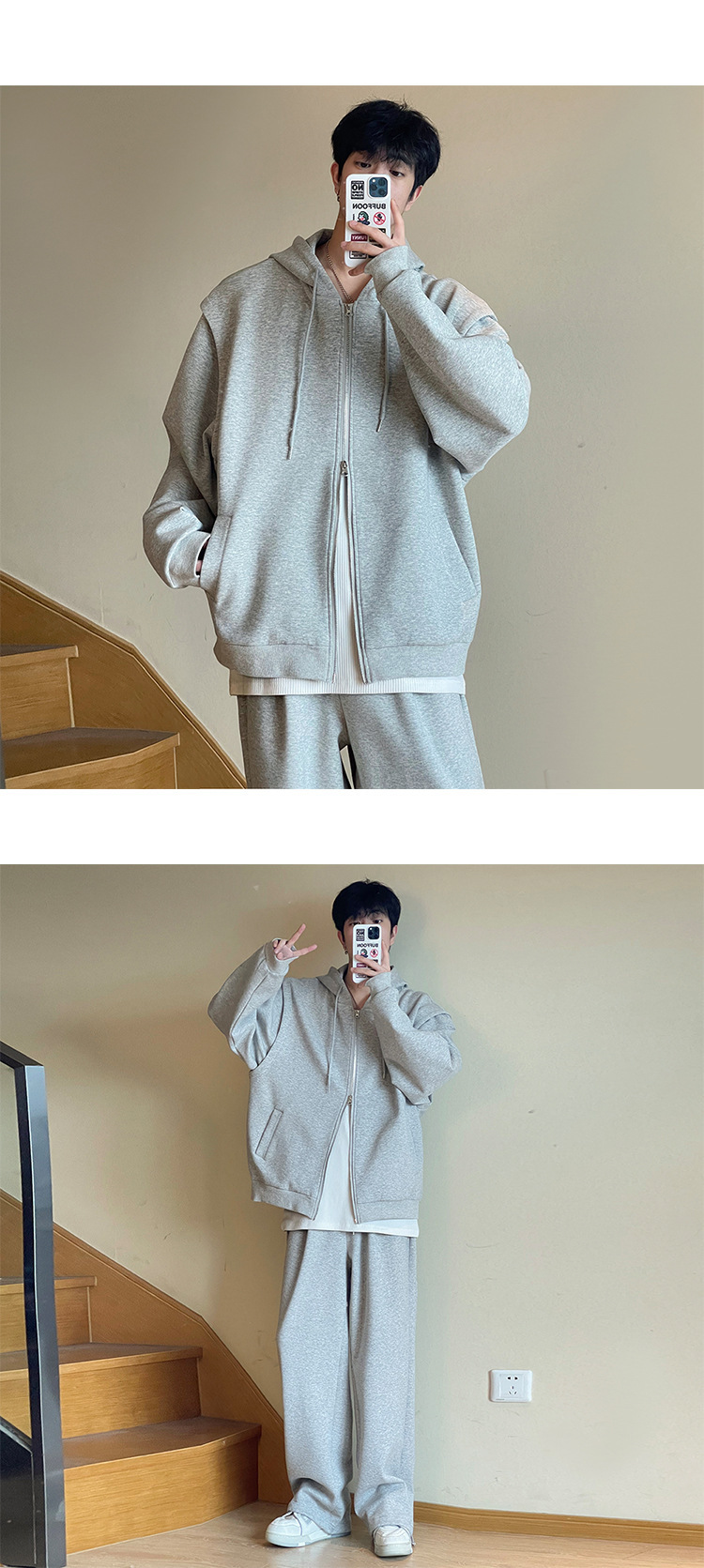 남성용 미국 트렌디 브랜드 후드 카디건 스웨트 셔츠 2024 봄, 가을 새로운 짧은 어깨 패드 캐주얼 스포츠 코트 탑스토어 가기