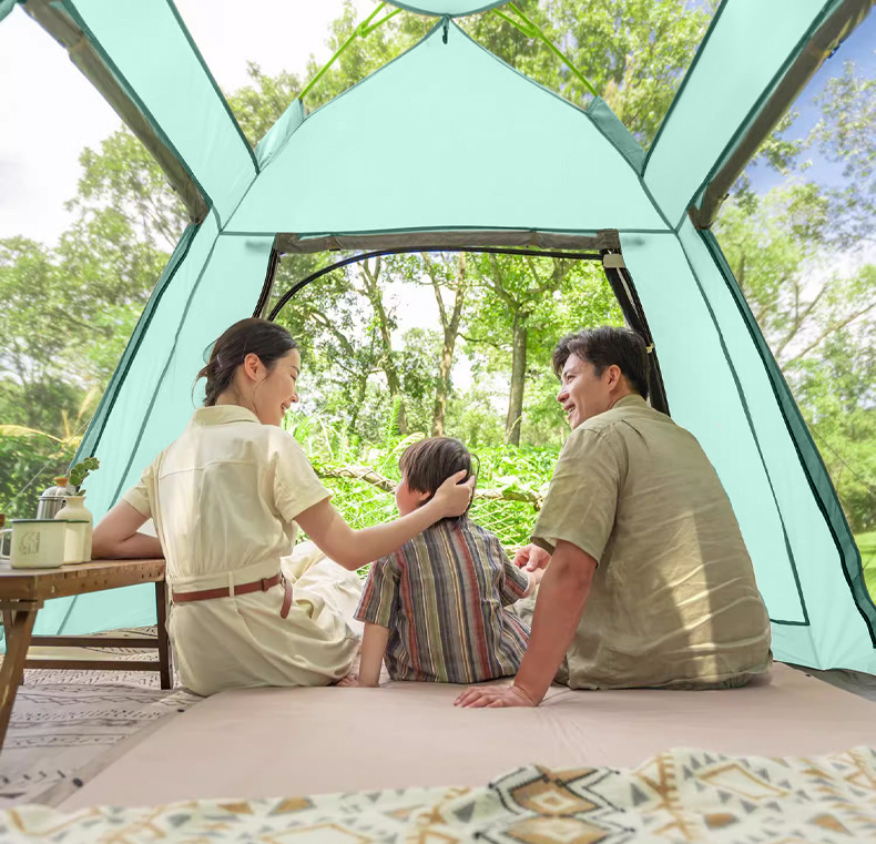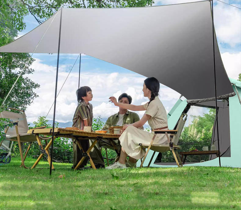 텐트 야외 3-4 명 완전 자동 스카이 커튼 접이식 2-in -1 휴대용 블랙 고무 캠핑 방비 장비 캠핑스토어 가기
