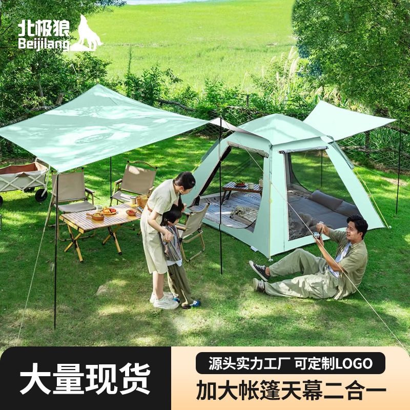 텐트 야외 3-4 명 완전 자동 스카이 커튼 접이식 2-in -1 휴대용 블랙 고무 캠핑 방비 장비 캠핑