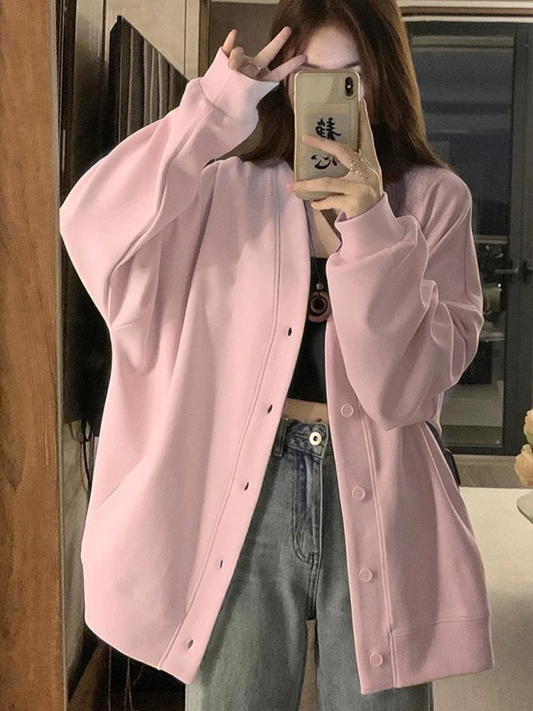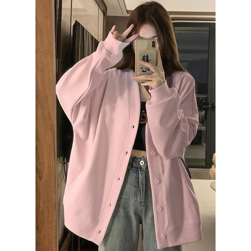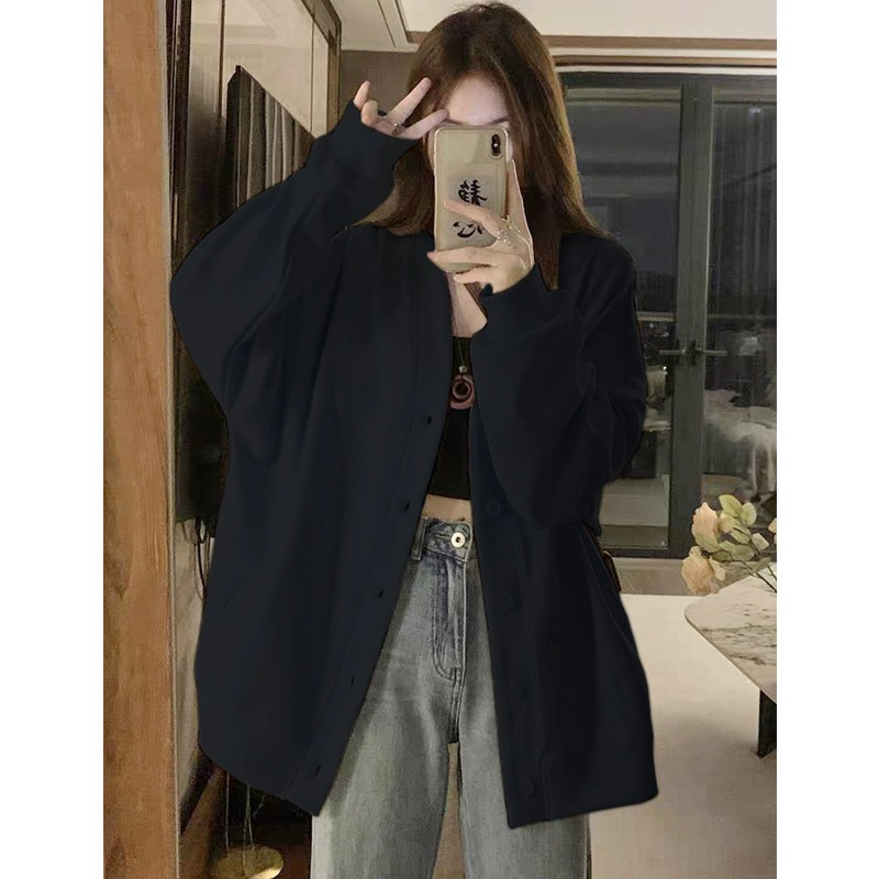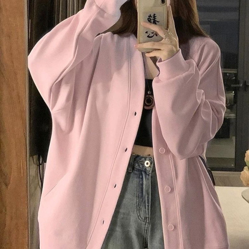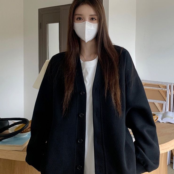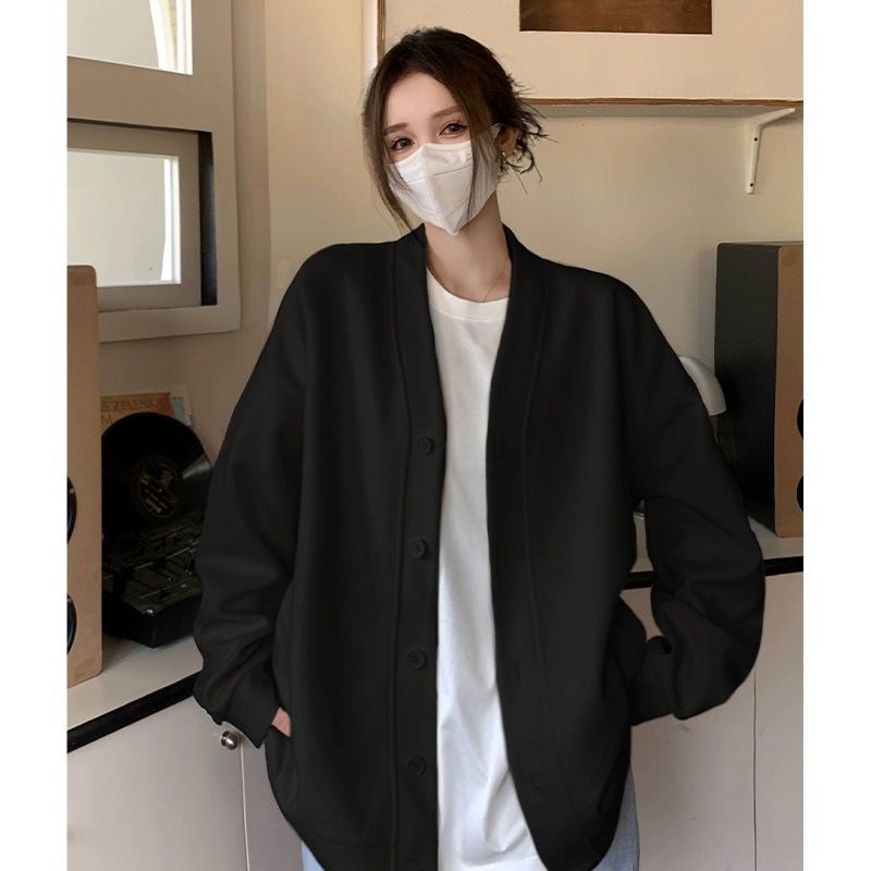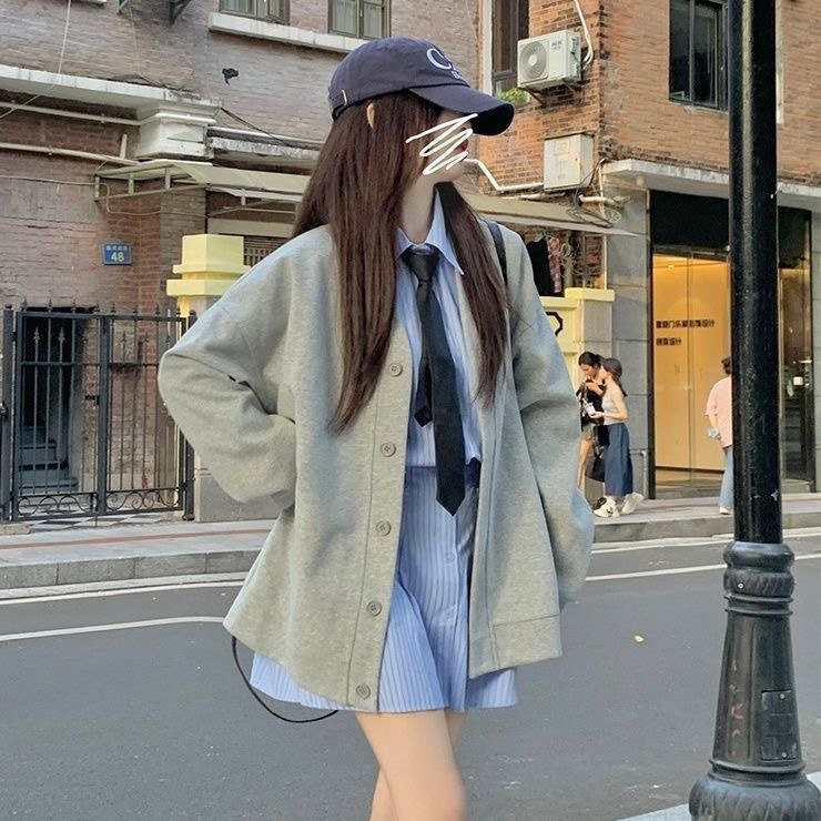 게으른 스타일 올 매치 스웨터 카디건 야구 2025 년 초가을 새로운 V 넥 느슨한 캐주얼 블랙 재킷스토어 가기
