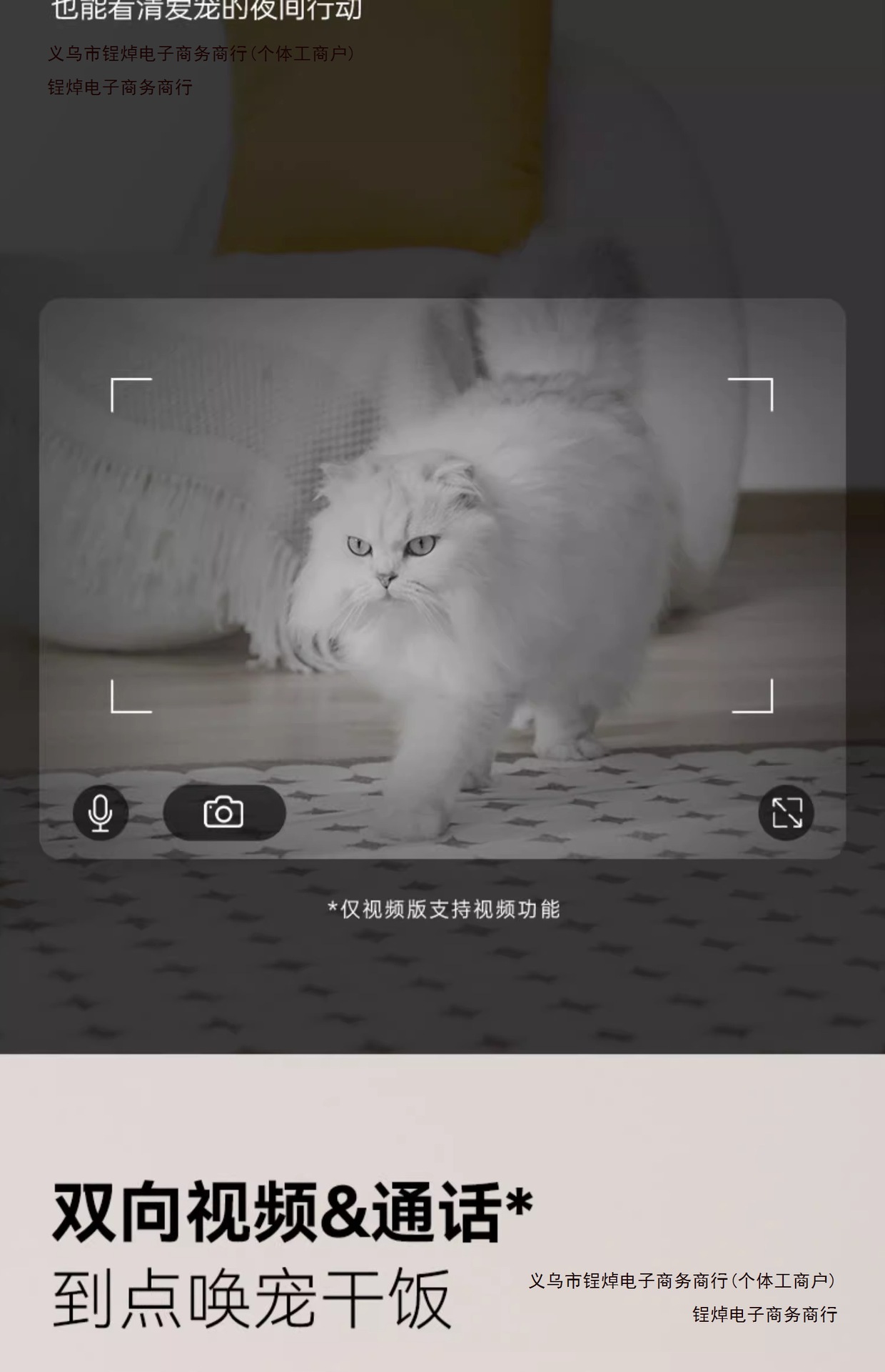 • 영상모델 [음식그릇 보이는, 영상 상호작용, 식수와 먹이주기 일체형 APP 원격제어, 정기적인 음식배달]