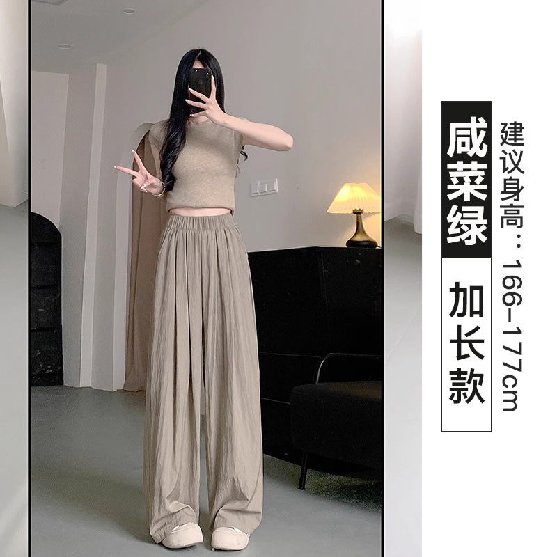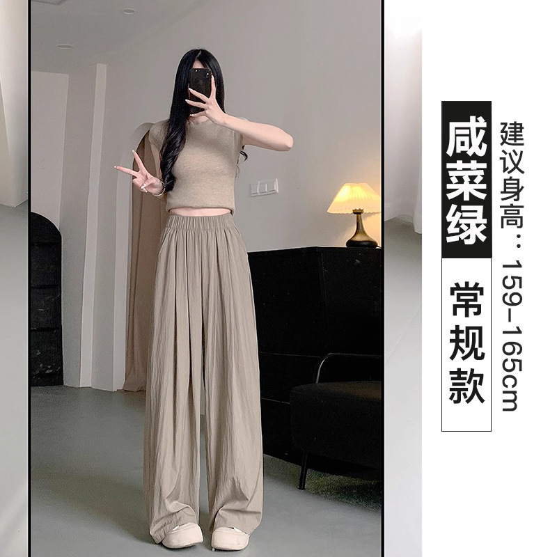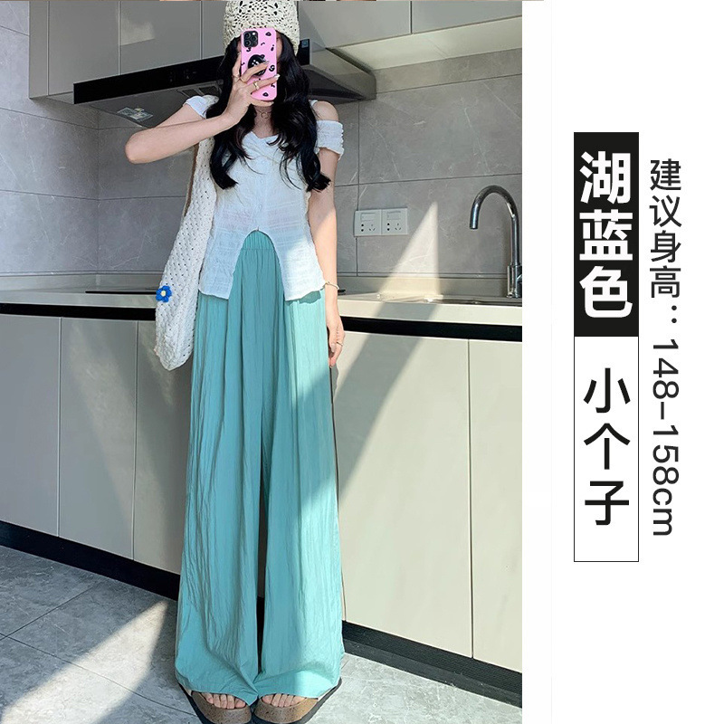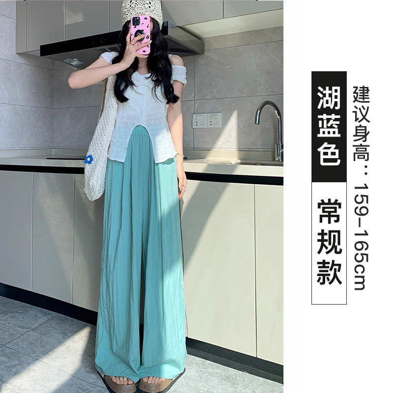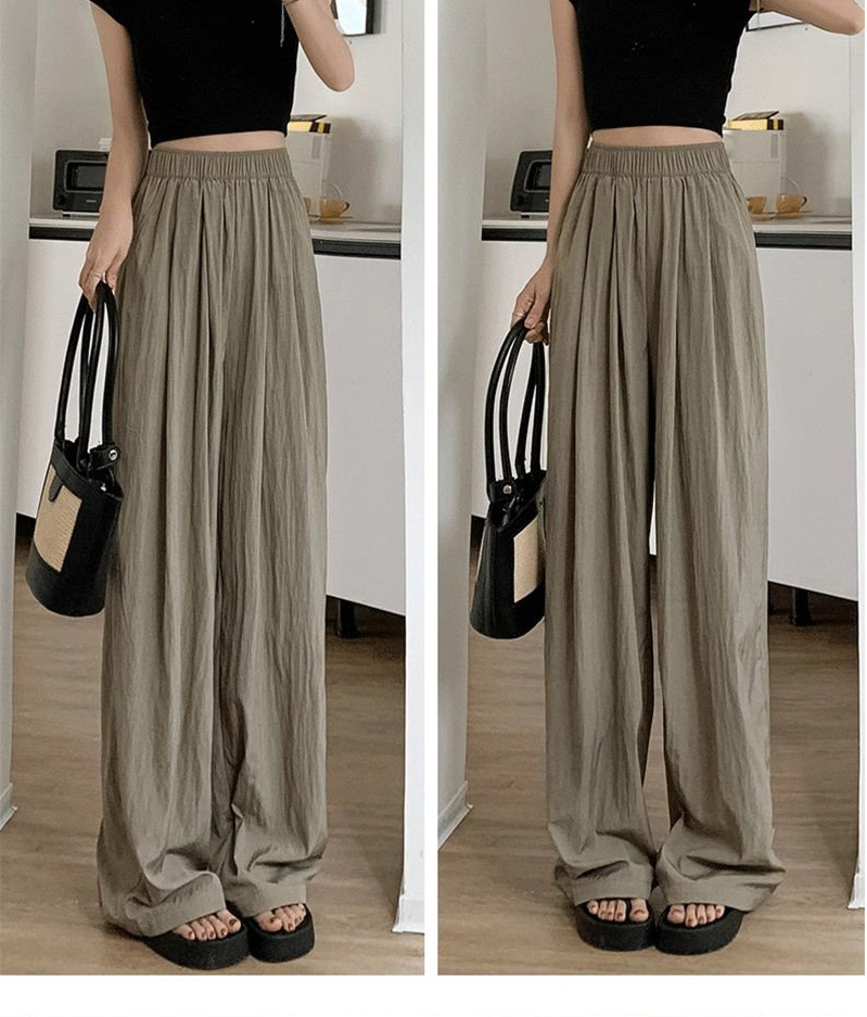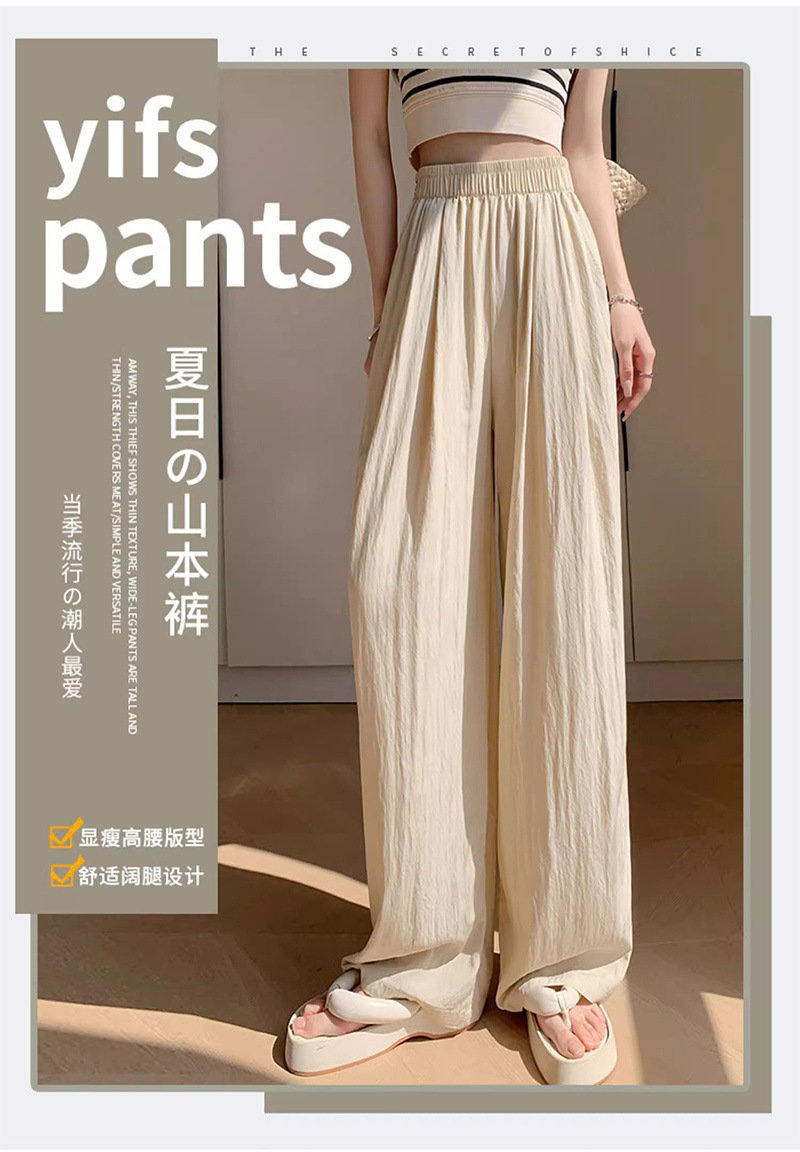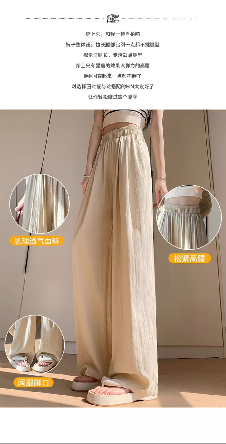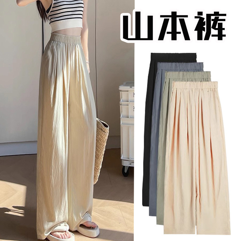살구색 아이스 실크 넓은 다리 바지 2025 새로운 여름 얇은 높은 허리 더미 캐주얼 게으른 스타일 야마모토 여성용 바지스토어 가기