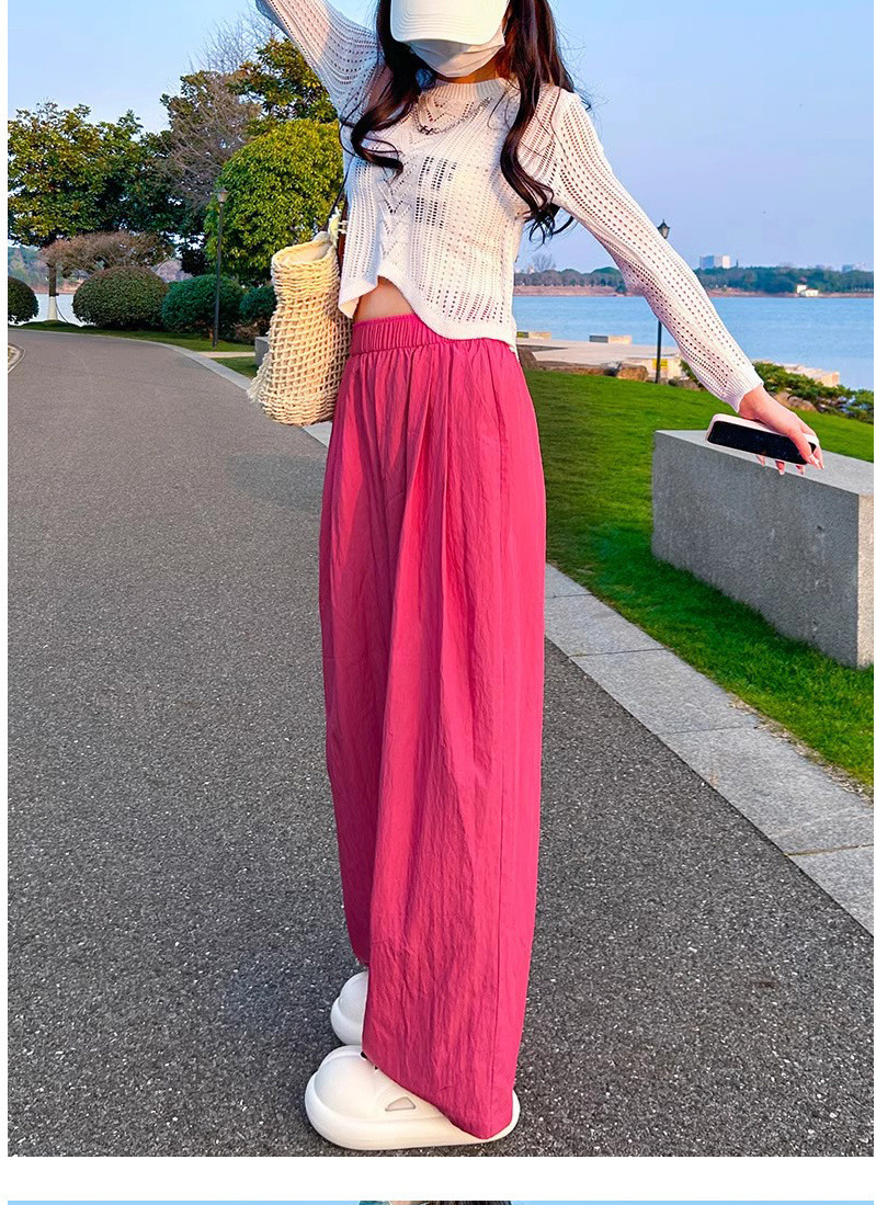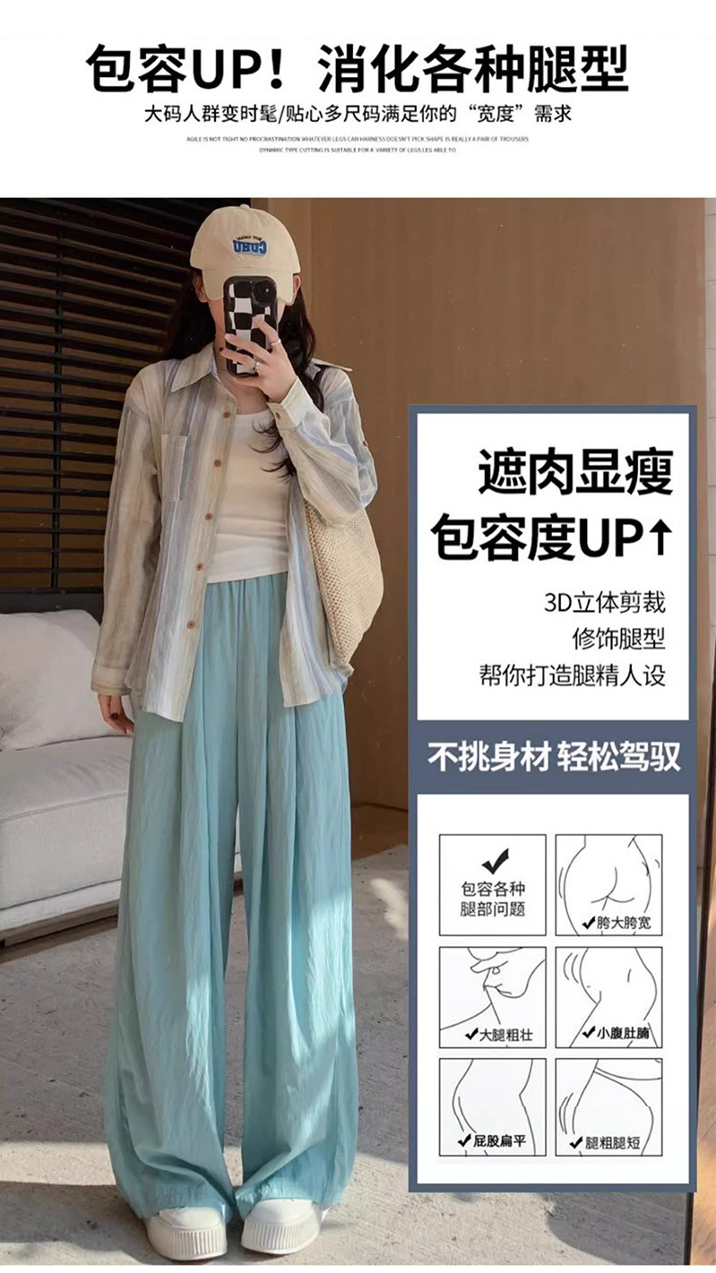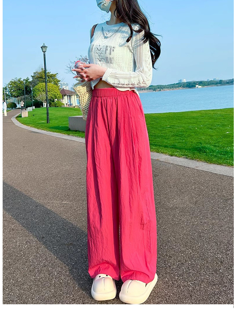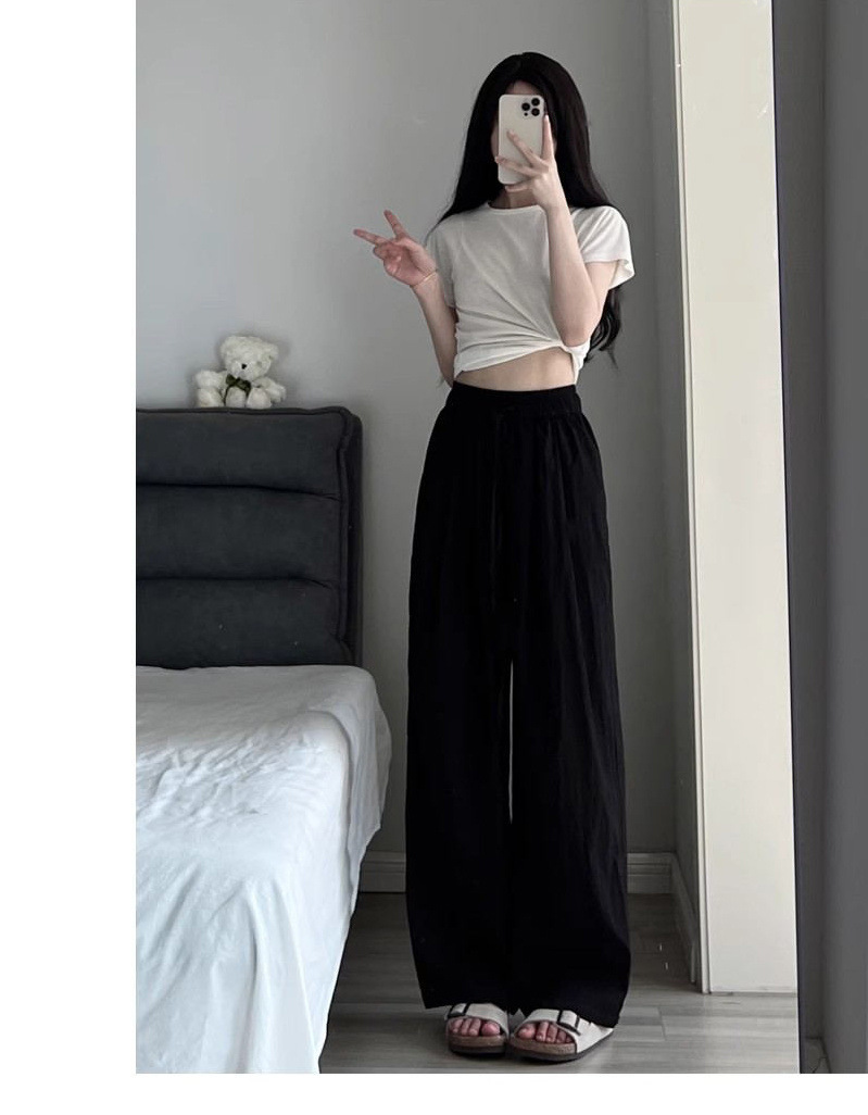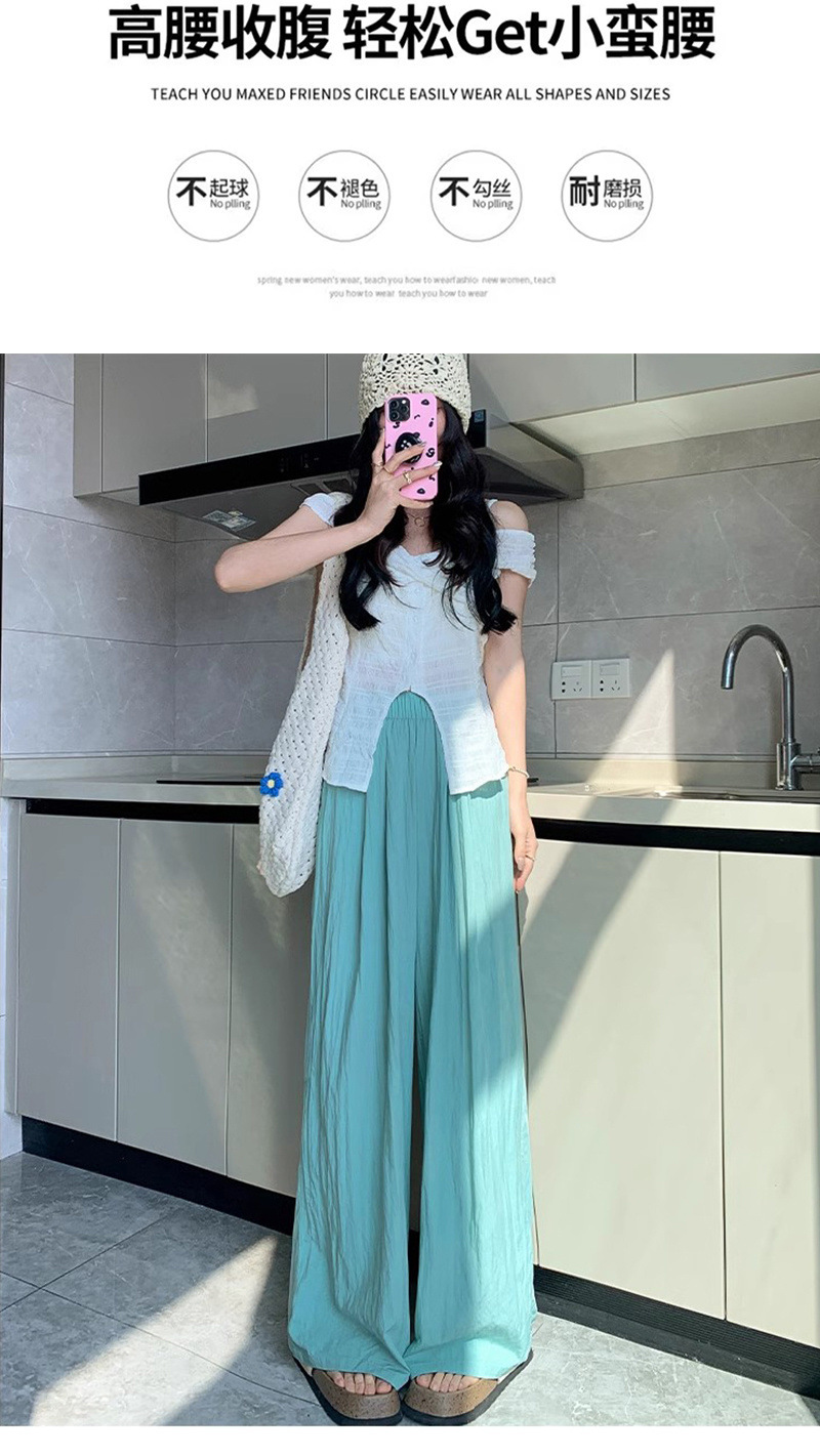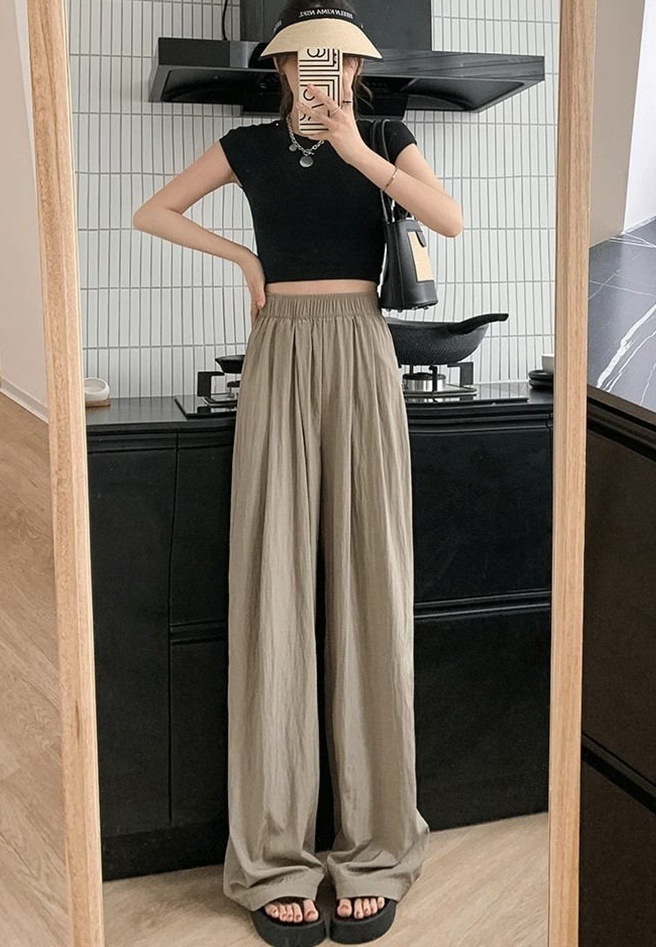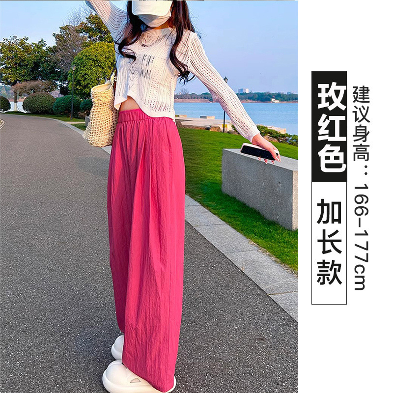 살구색 아이스 실크 넓은 다리 바지 2025 새로운 여름 얇은 높은 허리 더미 캐주얼 게으른 스타일 야마모토 여성용 바지스토어 가기