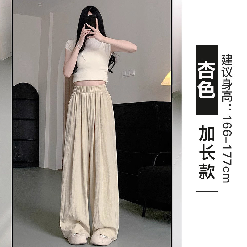 살구색 아이스 실크 넓은 다리 바지 2025 새로운 여름 얇은 높은 허리 더미 캐주얼 게으른 스타일 야마모토 여성용 바지