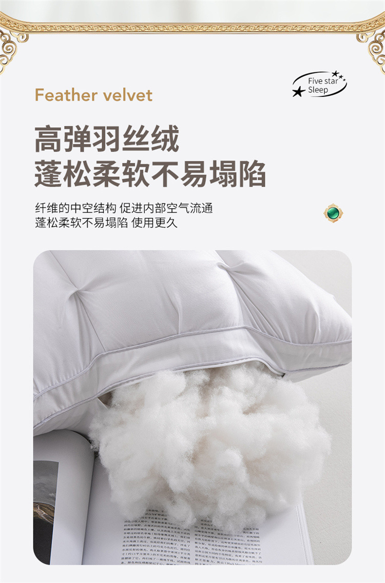 5 성급 호텔 깃털 벨벳 베개 95 화이트 깃털 벨벳 베개 코어 1 인 가정 경부 척추 보호 및 수면 보조 베개 코어