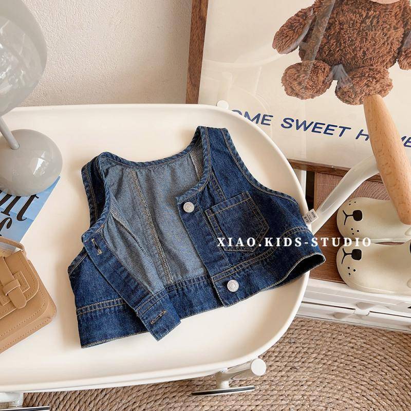 남학생과 여학생을 위한 짧은 데님 조끼, 라운드 넥, 루즈한 아우터 조끼, 세련된 양복 조끼, 다용도 조끼, 새로운 봄, 가을 스타일스토어 가기
