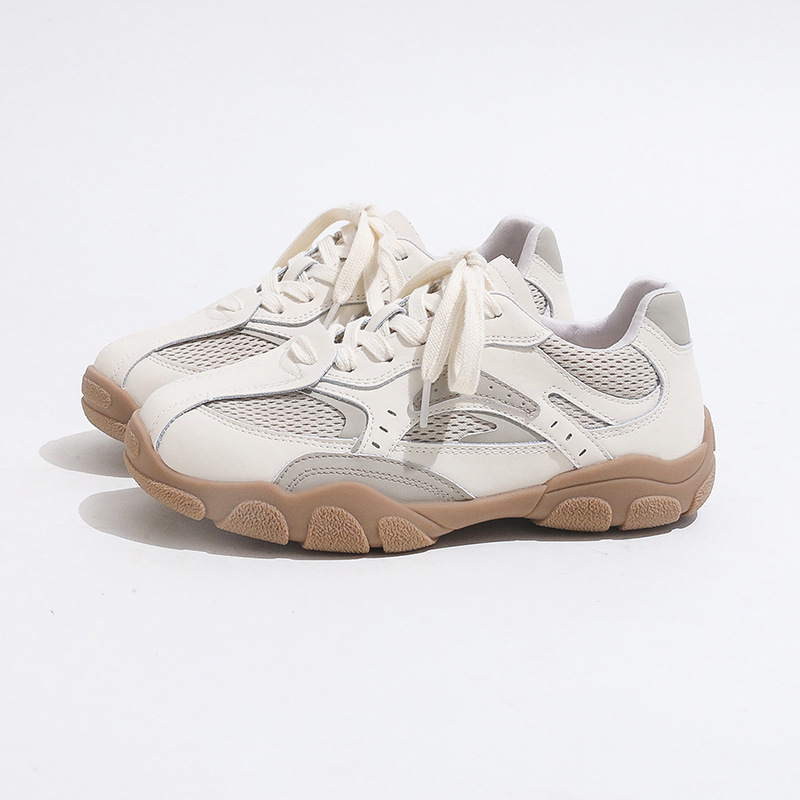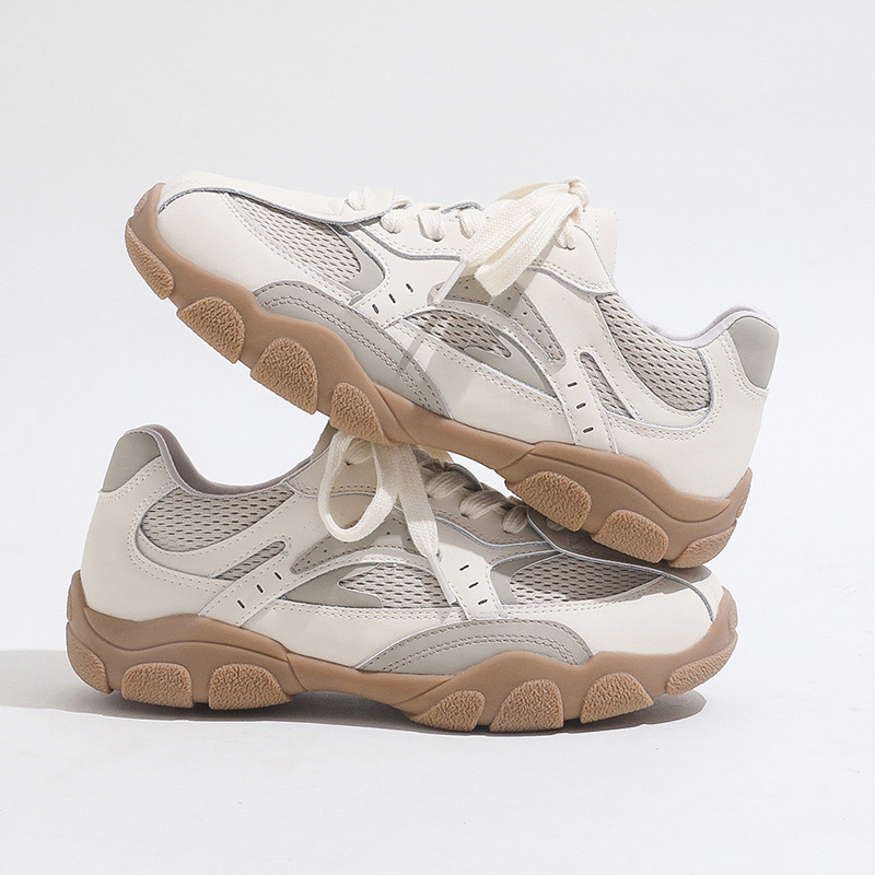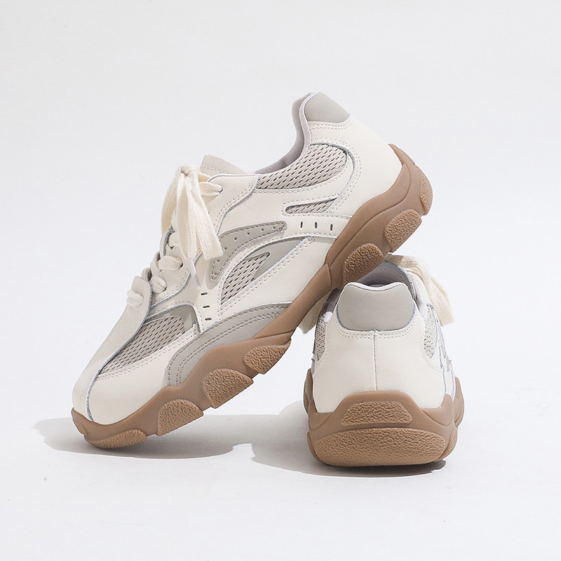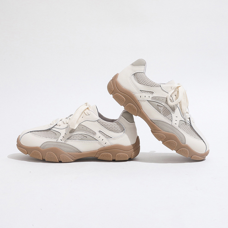 재고 소 가죽 두꺼운 밑창 독일 훈련 신발 여성의 2025 새로운 봄 야외 캐주얼 다양한 세련된 신발 흰색 신발스토어 가기