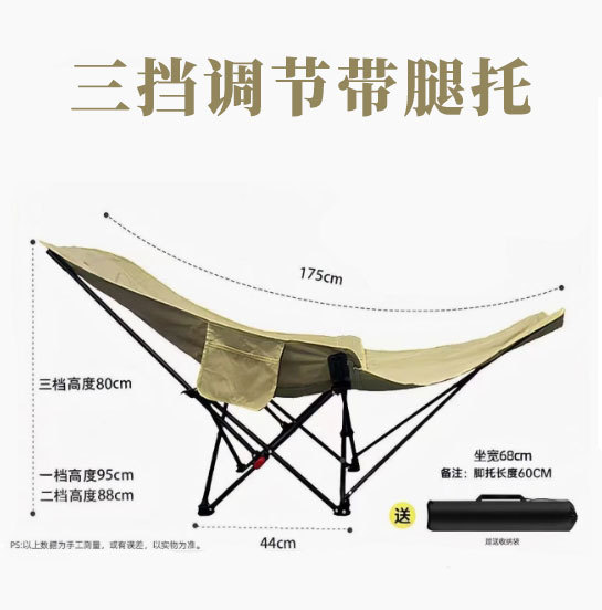 • 다리 받침대가 있는 3단 조절식 리클라이너 [카키색] 보관 가방 포함