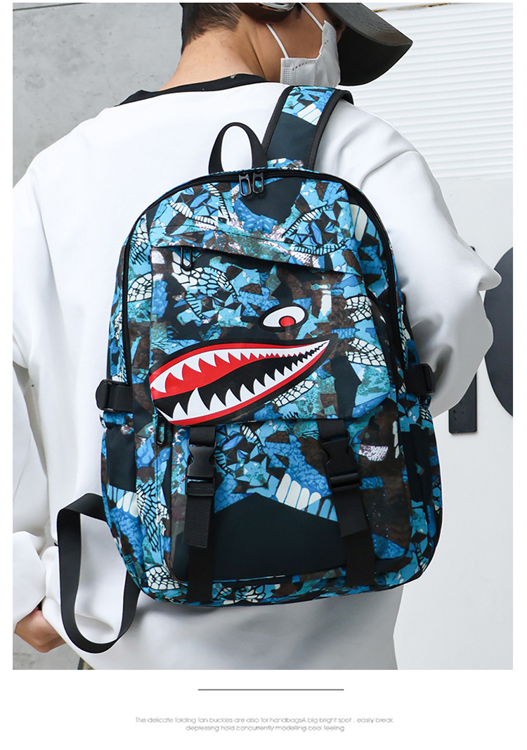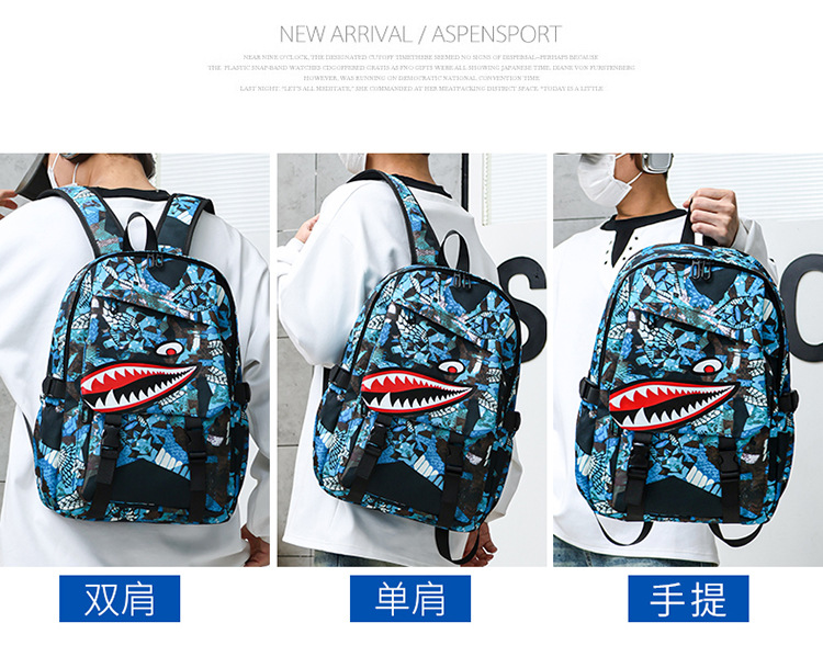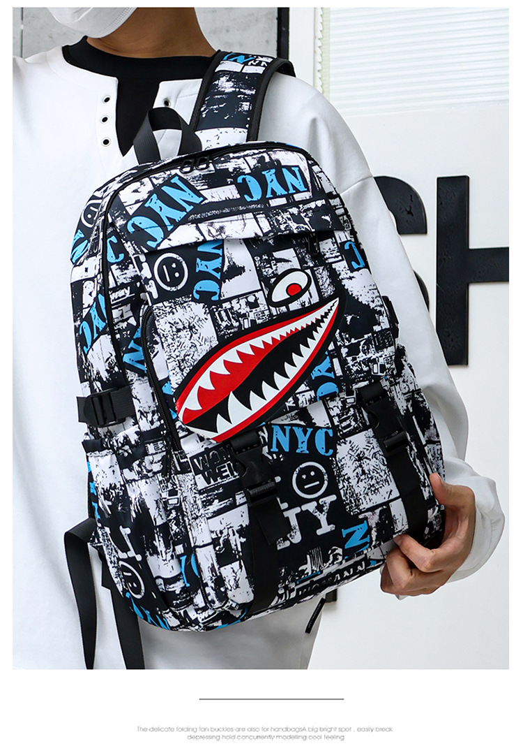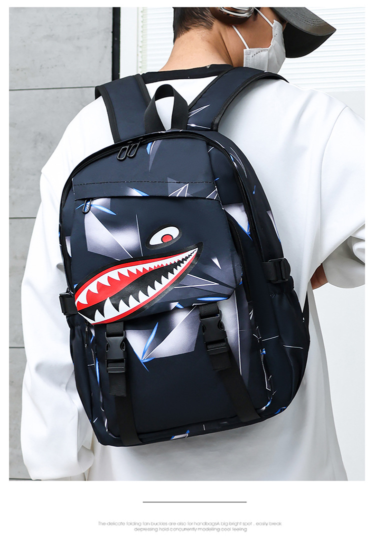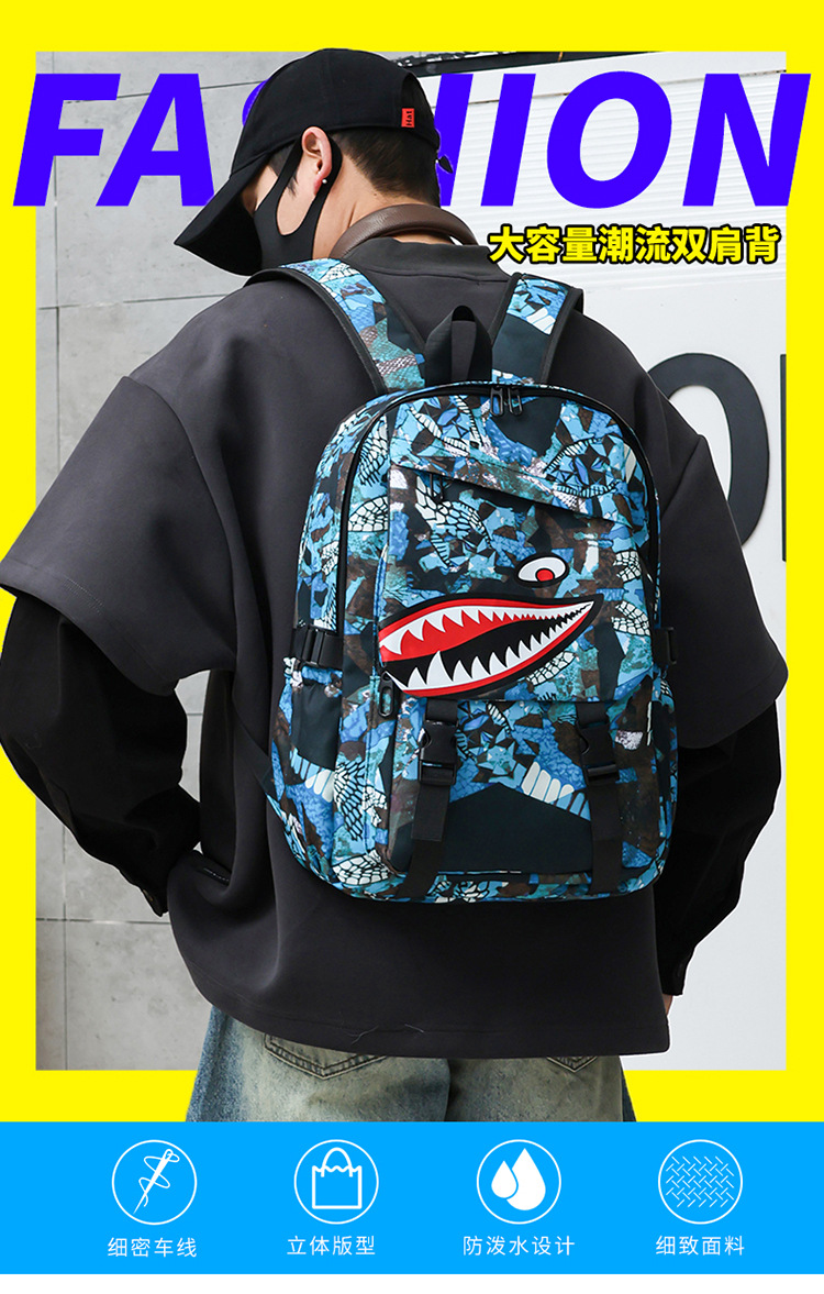 국경 간 인기 상품 상어 남성 패션 트렌드 청소년 중학교 배낭 대용량 맞춤형 방수 배낭 도매스토어 가기
