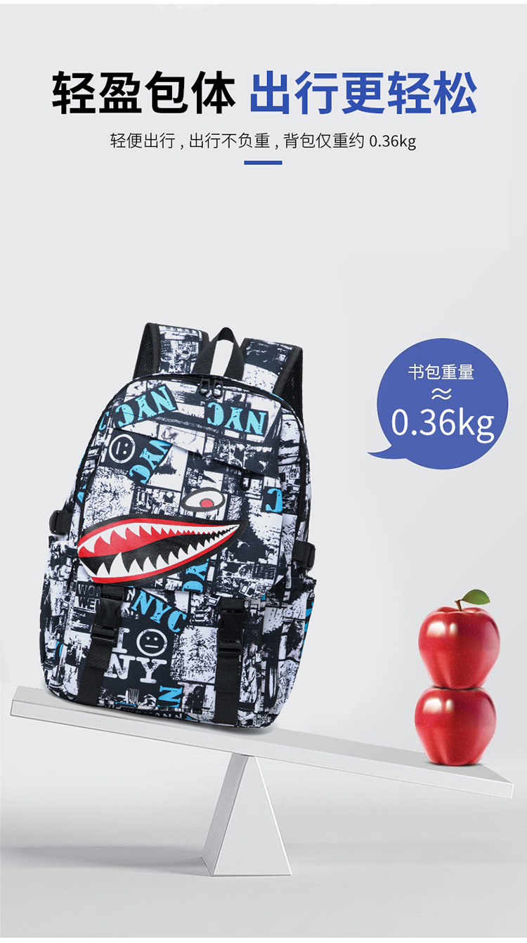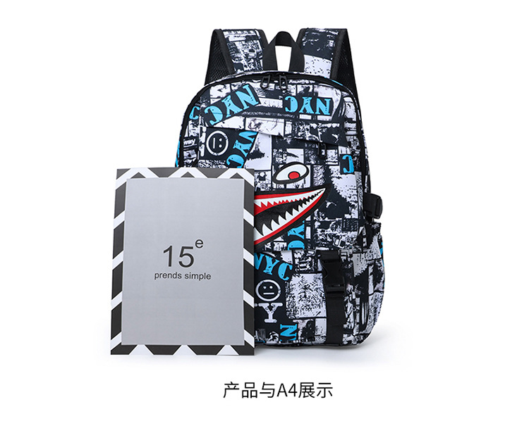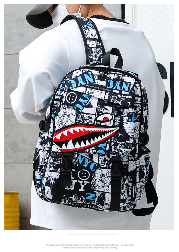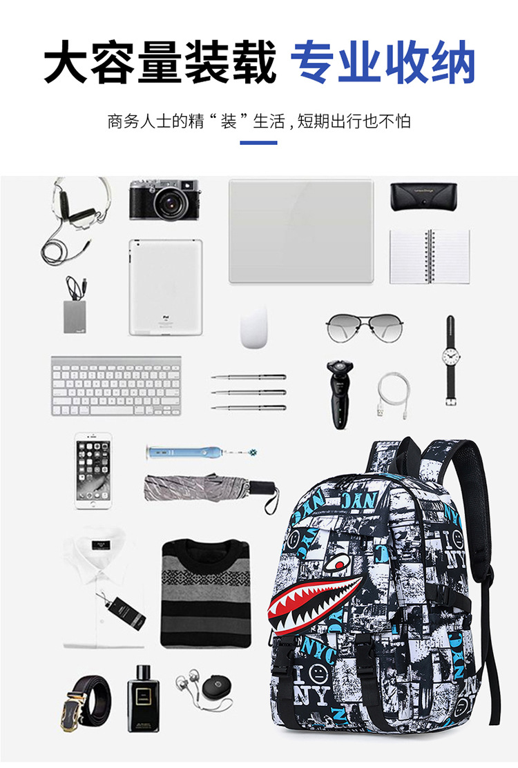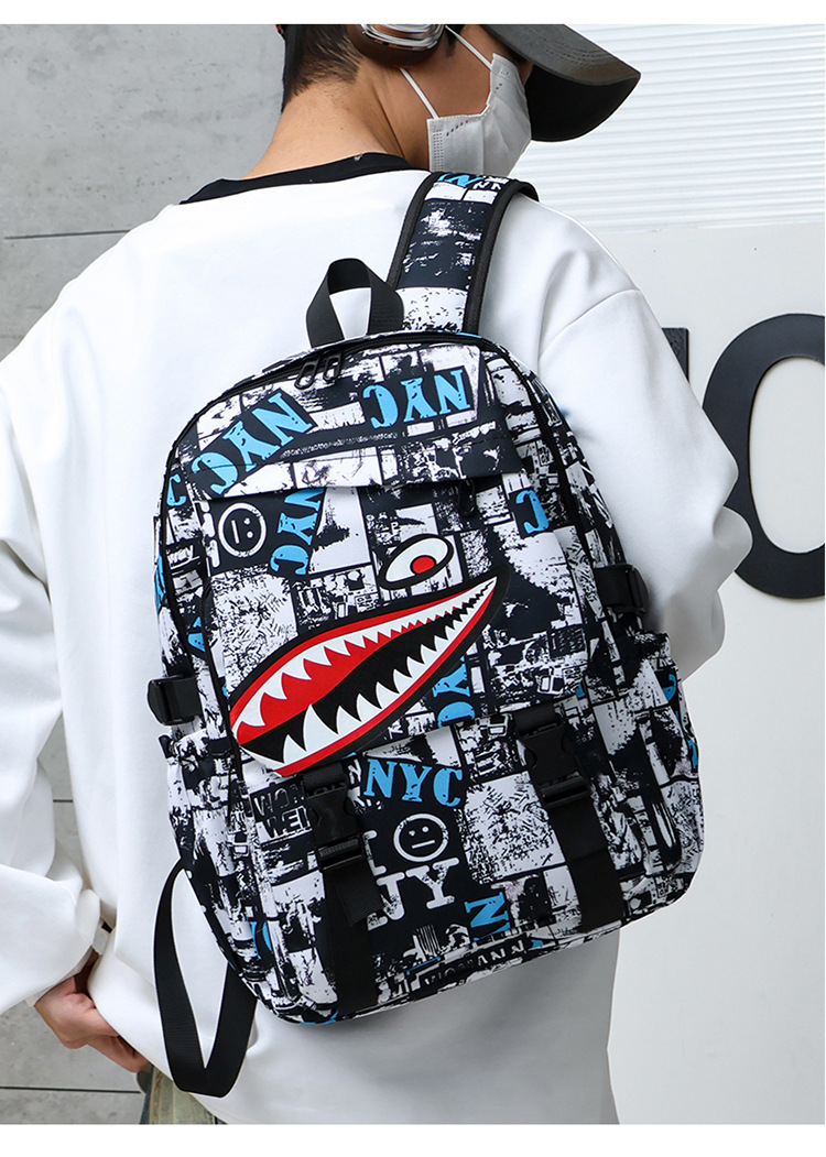 국경 간 인기 상품 상어 남성 패션 트렌드 청소년 중학교 배낭 대용량 맞춤형 방수 배낭 도매스토어 가기