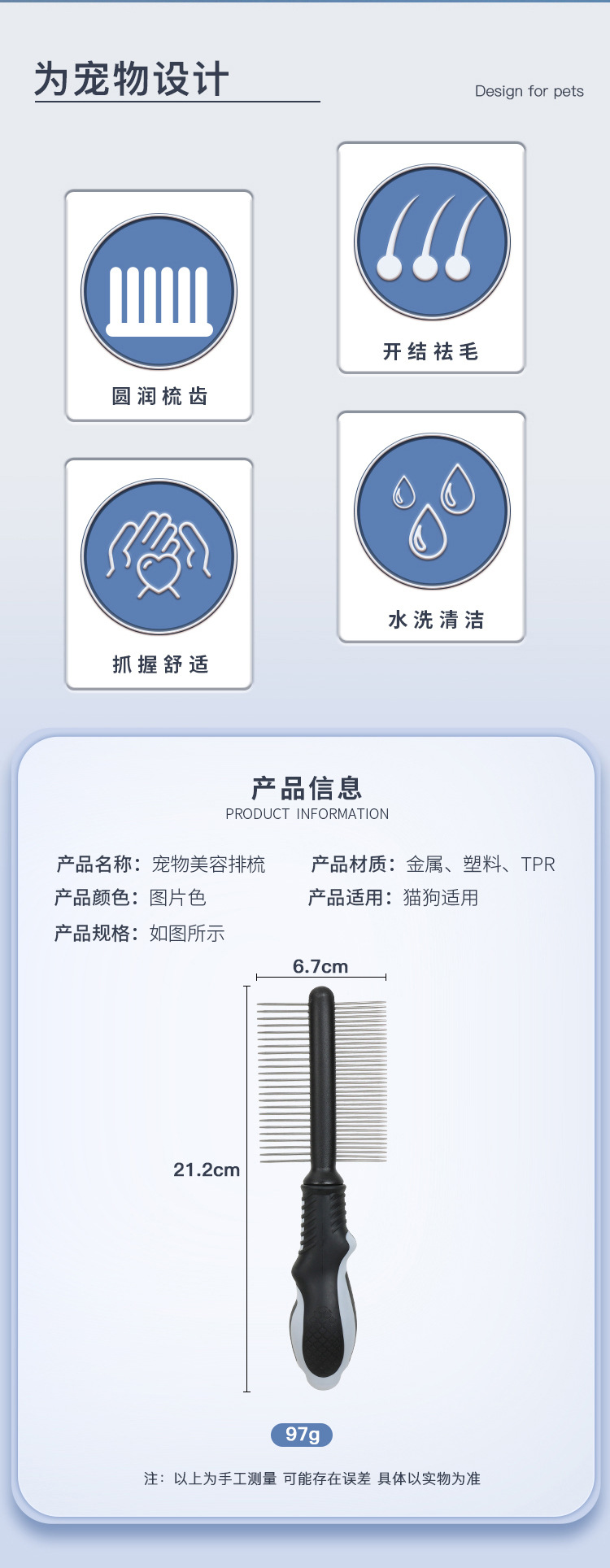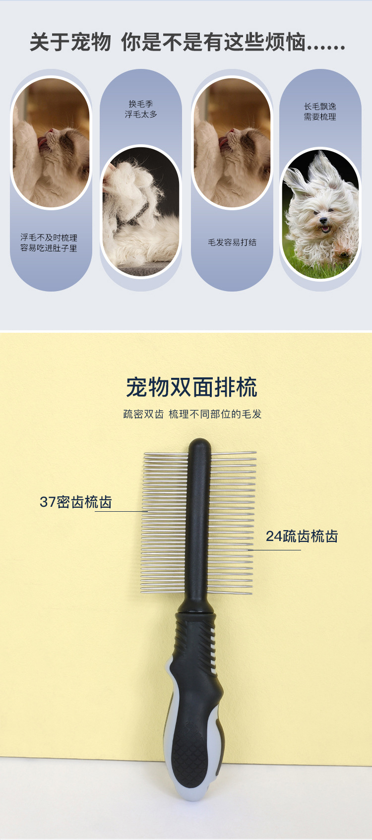 이중열 벼룩 빗, 고양이 빗, 개 빗, 대형견 골든 리트리버, 대형견 털 브러시, 빗질 빗, 빗질 빗