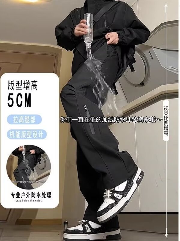 아메리칸 스타일 야외 방수 충전 바지 남성과 여성의 이른 봄과 가을 안티 팬 클라이밍 플록 커플 클립 캐주얼 바지