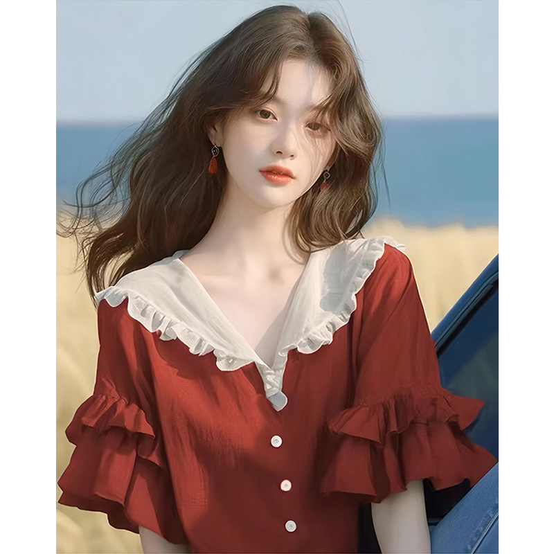 여성용 패셔너블한 반팔 쉬폰 셔츠 2026년 신상 여름 유행 예쁜 루즈핏 프렌치 러플 탑