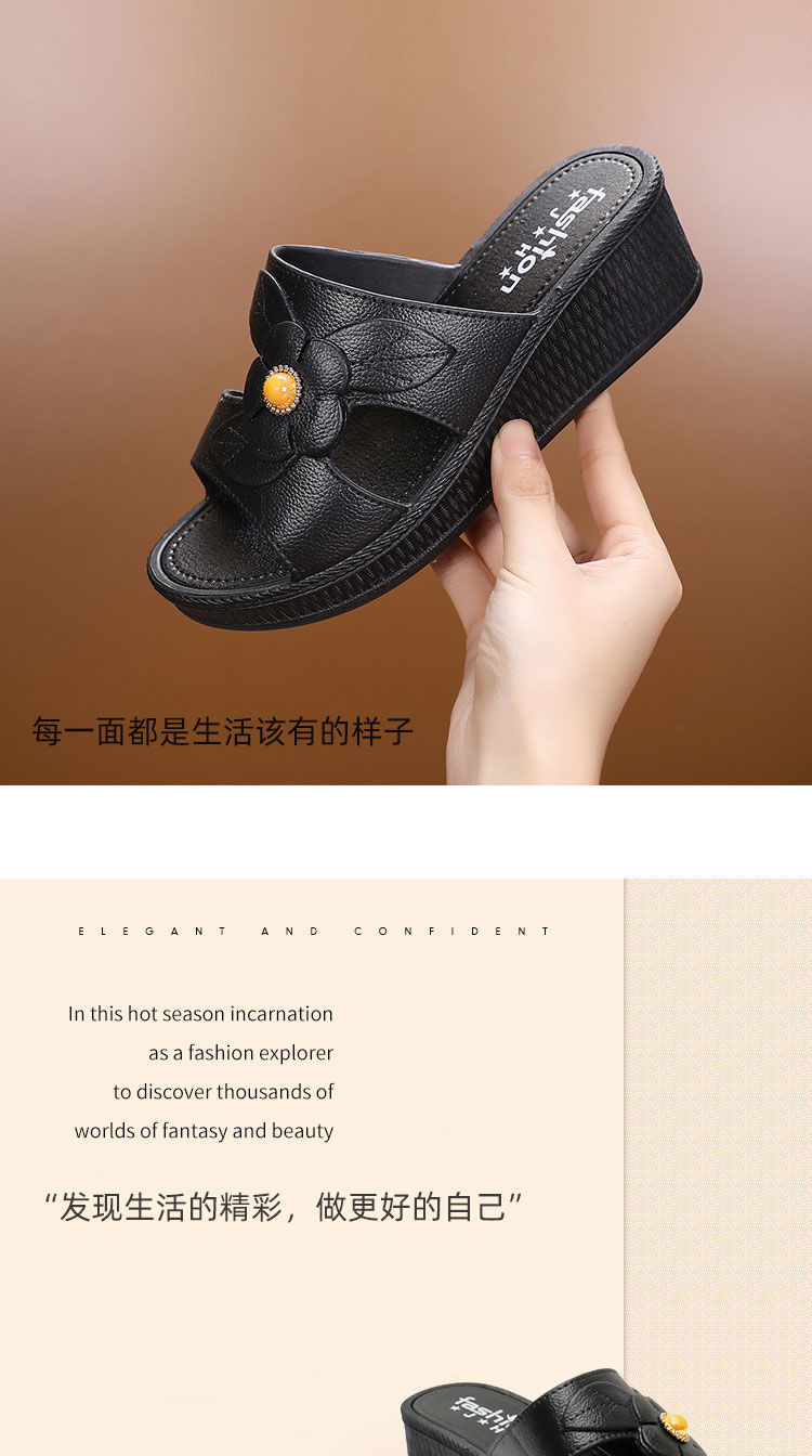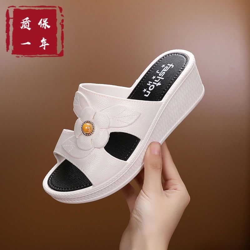 여성용 새 슬리퍼, 여름 아우터, 가정용 두꺼운 밑창, 키높이 힐, 홈 실내 및 실외 미끄럼 방지 사회 여성 Sen Sheng스토어 가기