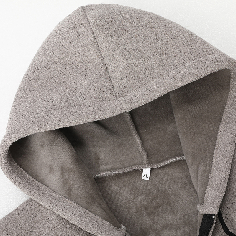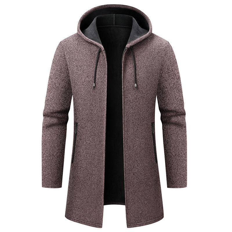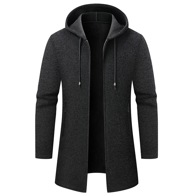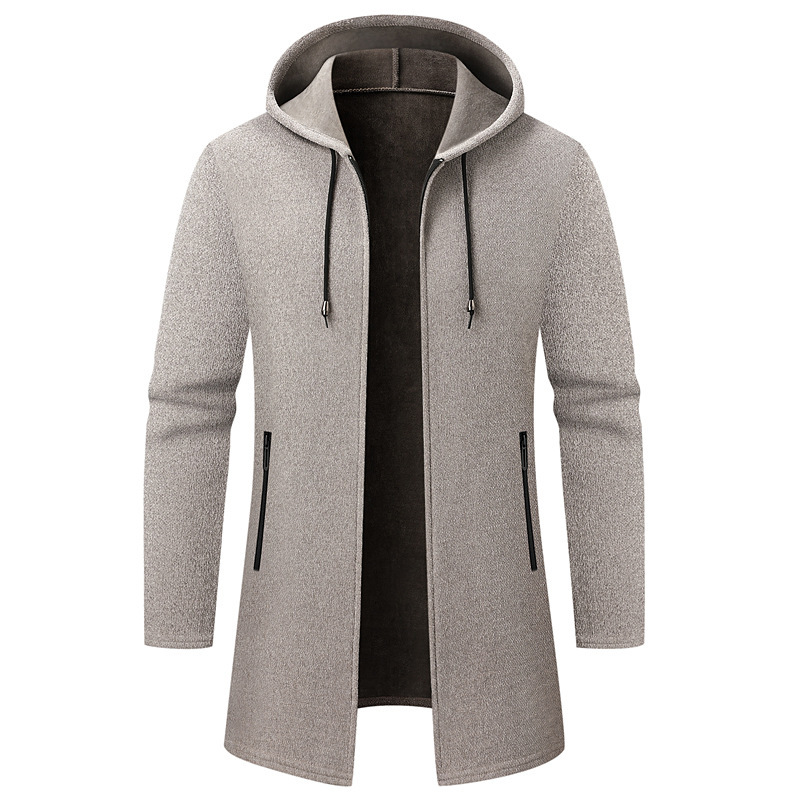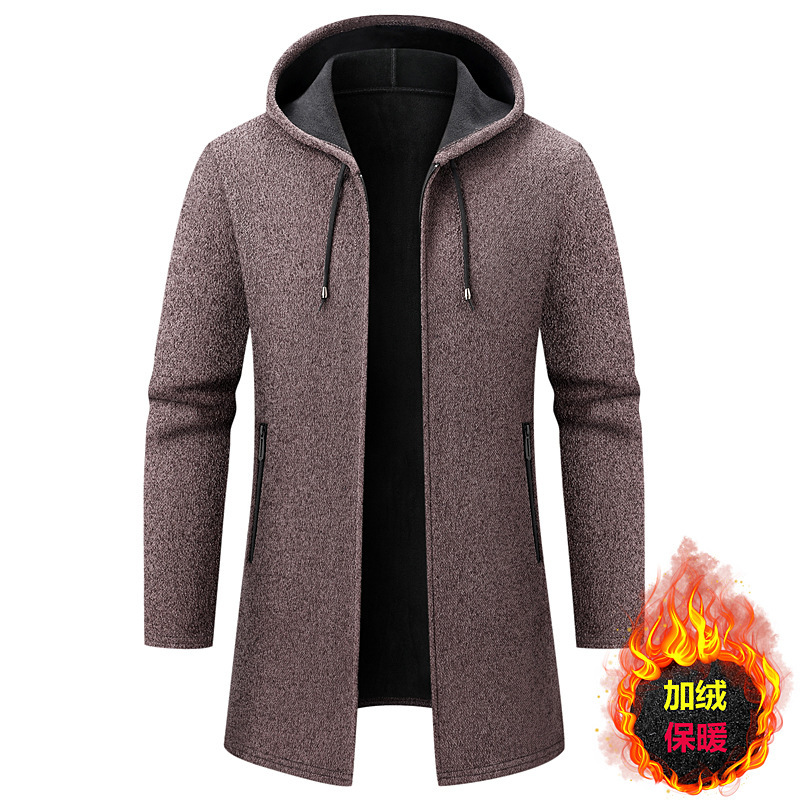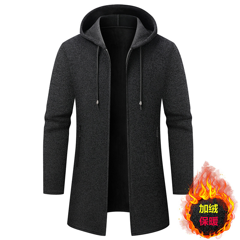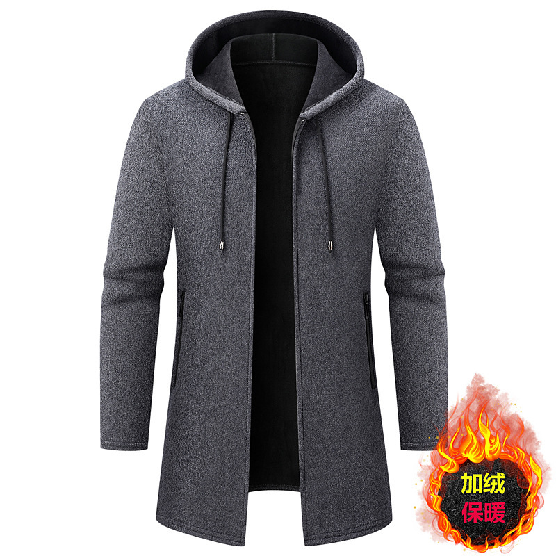 대외 무역 남성용 솔리드 컬러 중간 길이 스웨터 카디건 재킷 남성용 느슨한 두꺼운 후드 셔닐 스웨터