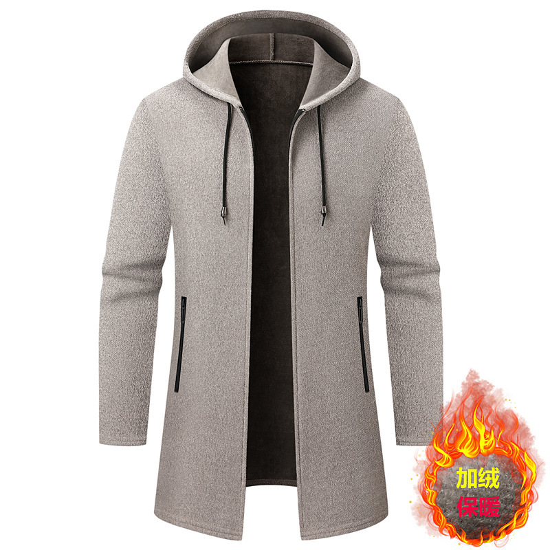 대외 무역 남성용 솔리드 컬러 중간 길이 스웨터 카디건 재킷 남성용 느슨한 두꺼운 후드 셔닐 스웨터스토어 가기