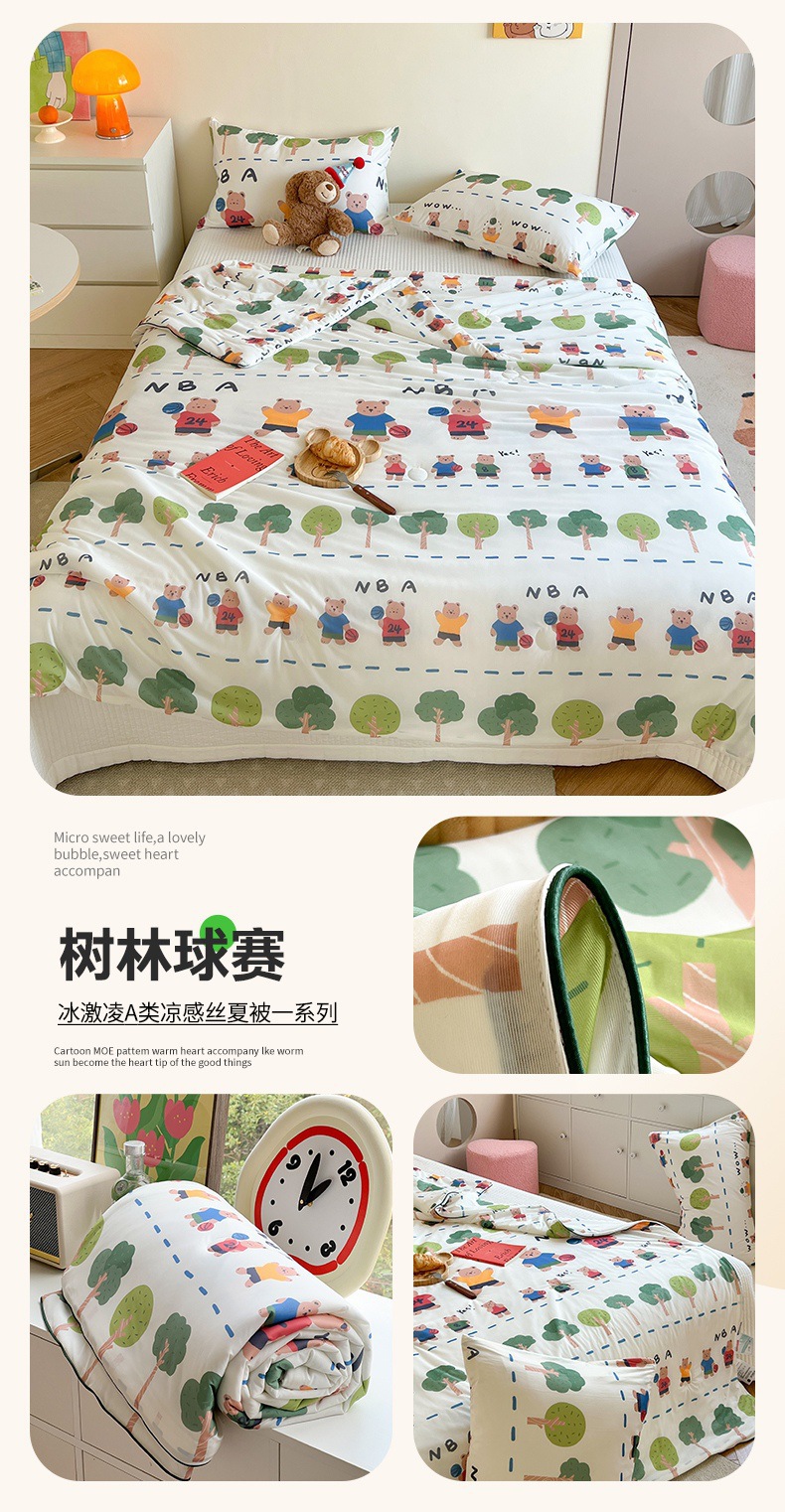 시원한 실크 여름 시원한 이불 어린이 아이스크림 에어컨 이불 여름 얇은 얼음 실크 이불 기계 세탁기 단일 여름 이불스토어 가기