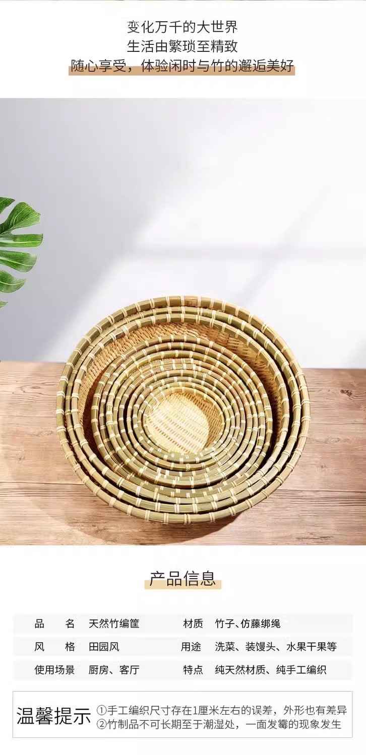 대나무 뗏목 제품 찐 빵 빵 바구니 Shiu Dustpan Farmer 가정용 수제 둥근 보관 배수 바구니 대나무 바구니, Holeless Sieve스토어 가기