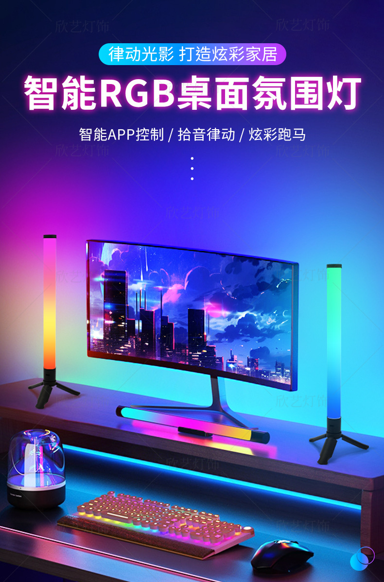 전기 경쟁 분위기 빛 led 다채로운 데스크탑 스티칭 diy 룸 픽업 라이트 침실 게임 RGB 스마트 나이트 라이트