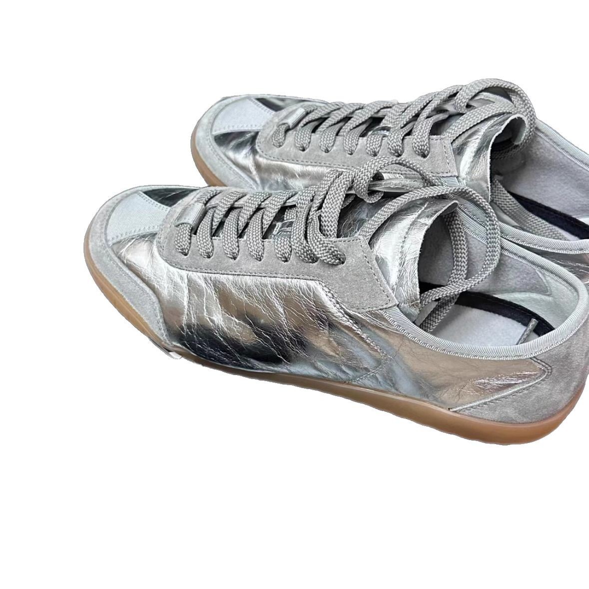 양가죽 버전 ~ 작은 향기로운 스타일의 가죽 두꺼운 밑창 실버 독일 훈련 신발 여성 레이스 업 신발 캐주얼 스케이트 신발 lefu 작은 가죽 신발