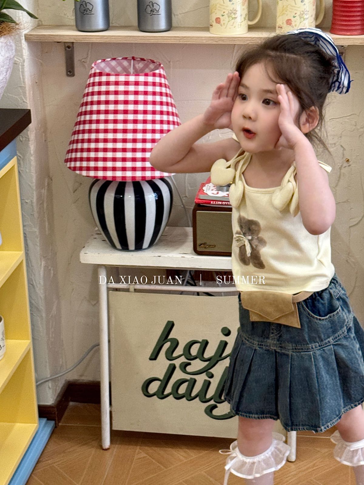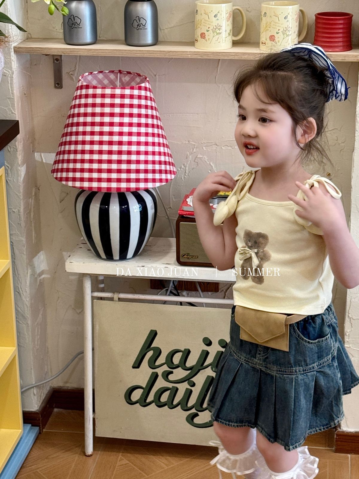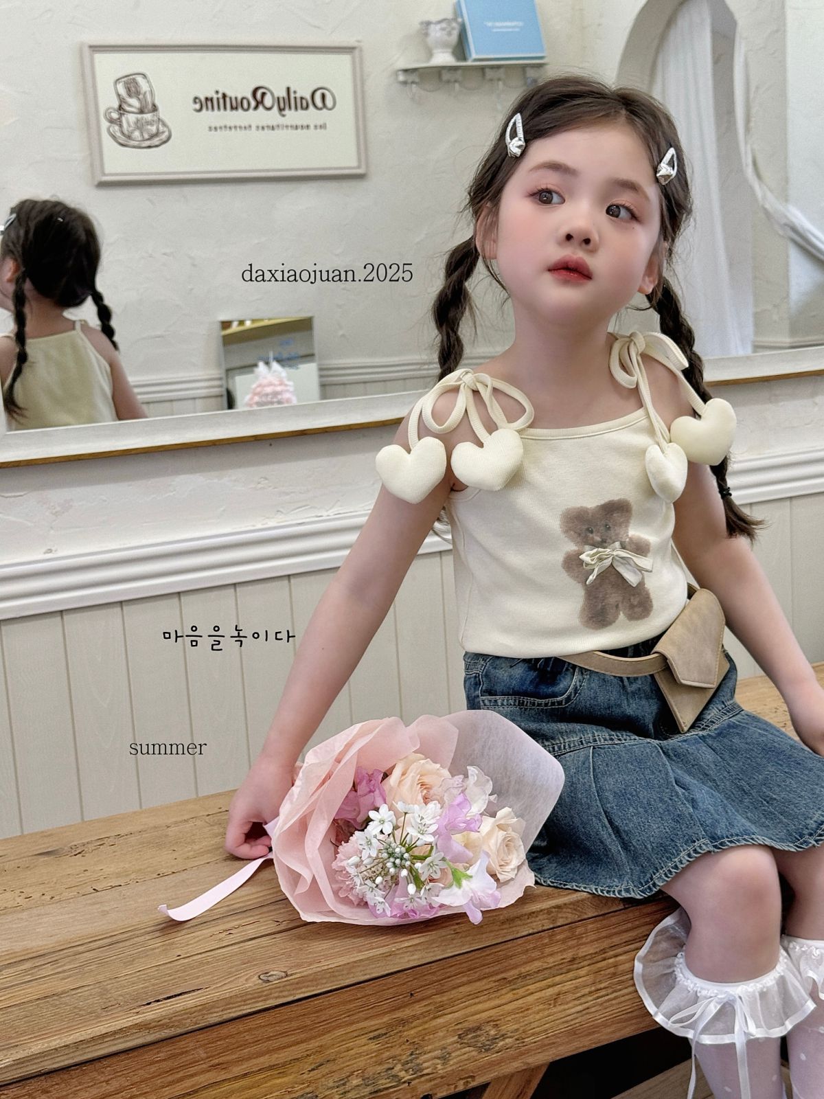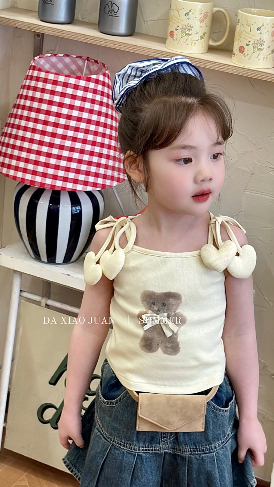 사이즈 롤 25 여름 새 소녀 카미 솔 조끼 곰 인쇄 사랑 슬링 어린이 민소매 달콤한 탑