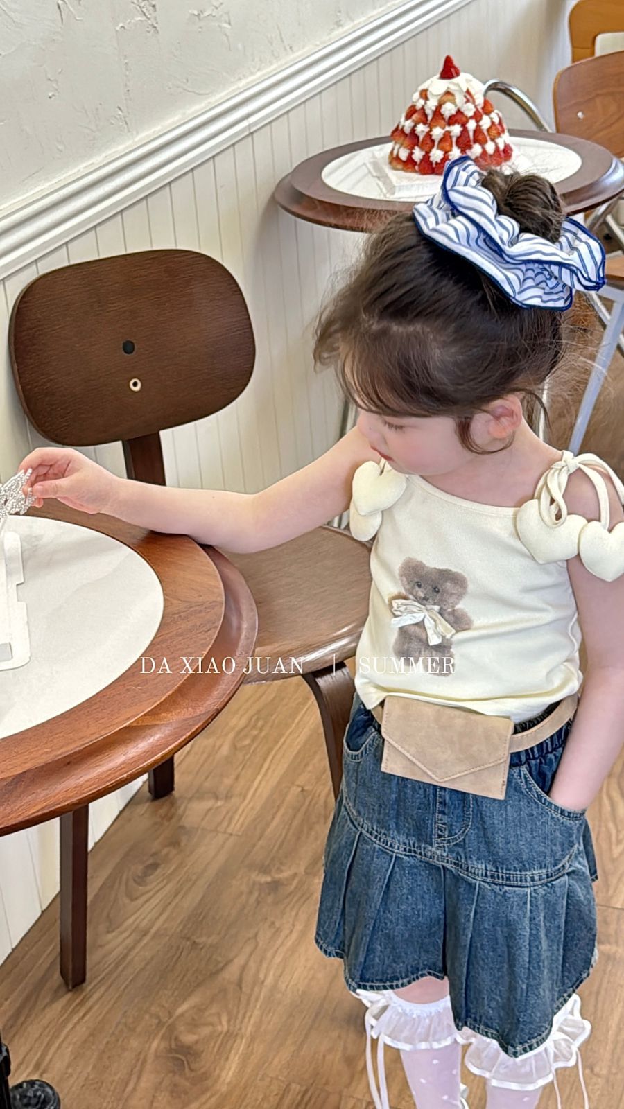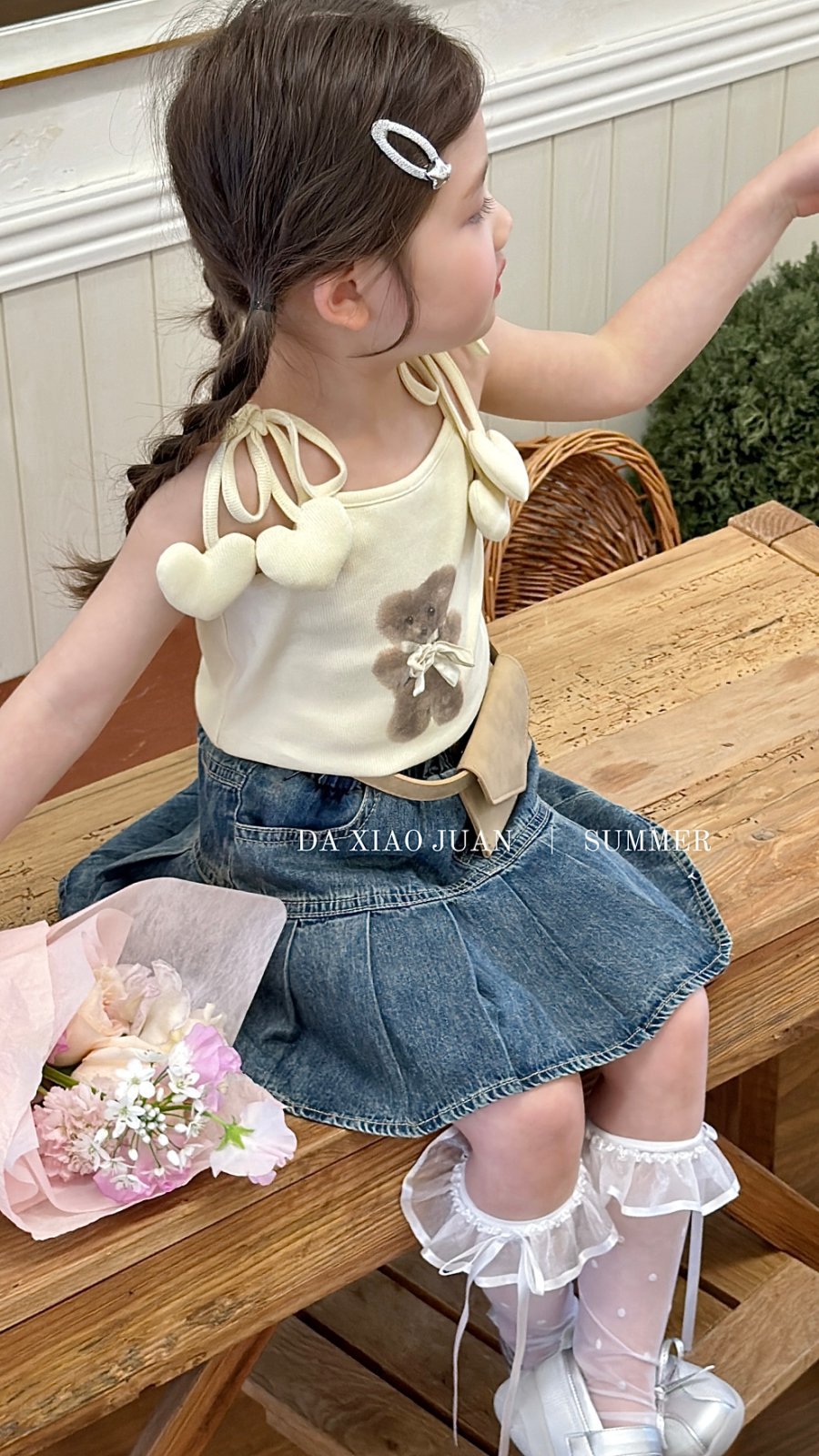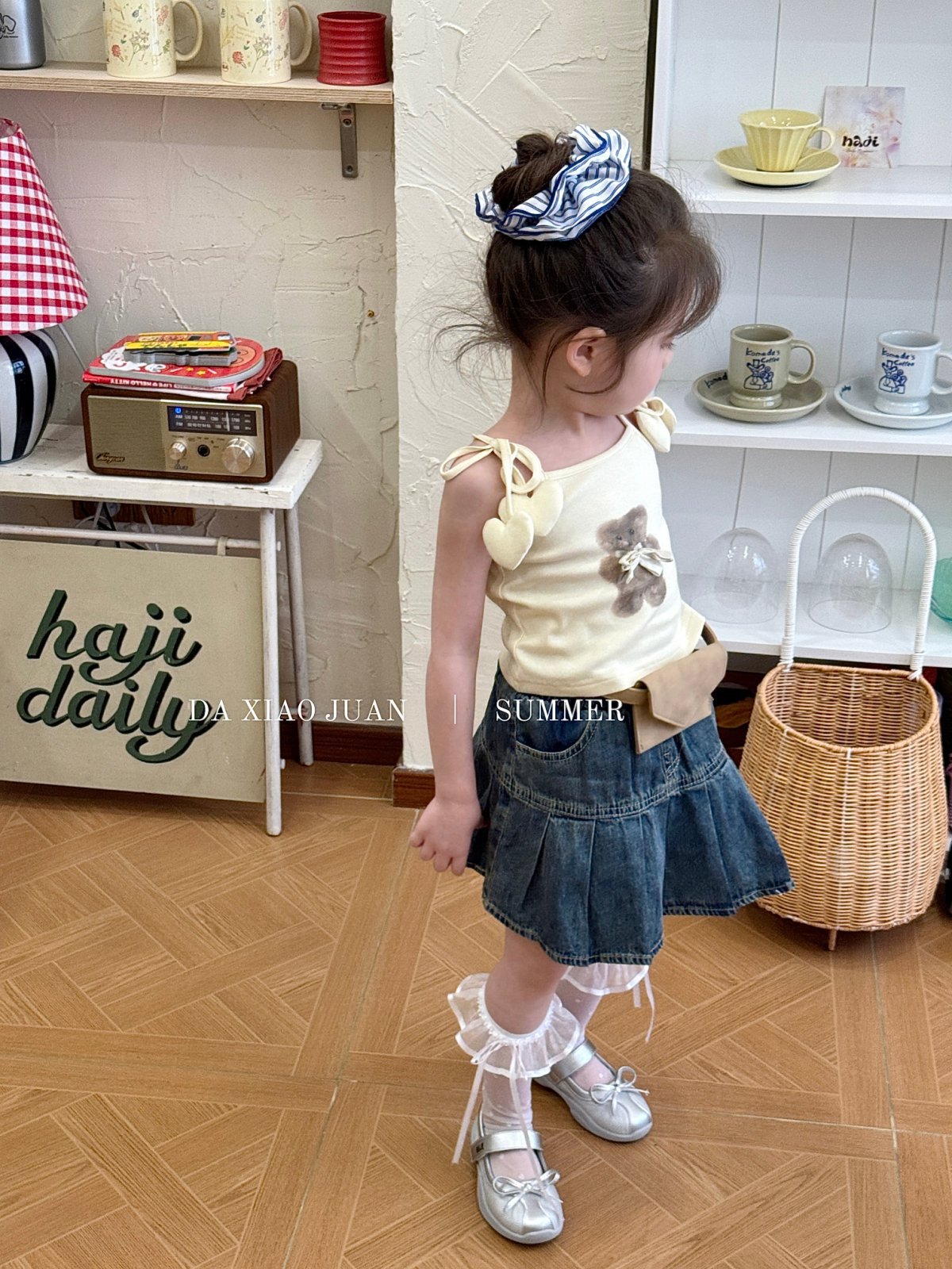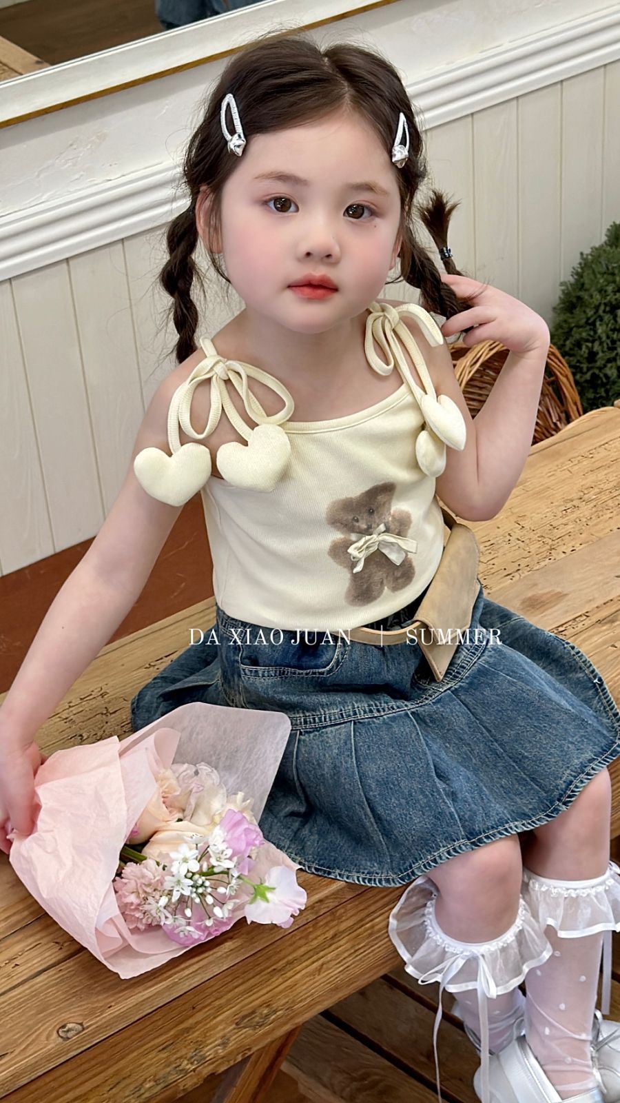 사이즈 롤 25 여름 새 소녀 카미 솔 조끼 곰 인쇄 사랑 슬링 어린이 민소매 달콤한 탑
