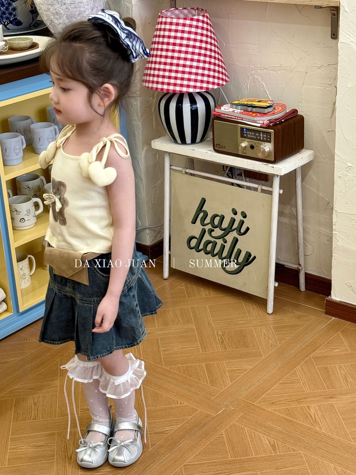 사이즈 롤 25 여름 새 소녀 카미 솔 조끼 곰 인쇄 사랑 슬링 어린이 민소매 달콤한 탑스토어 가기
