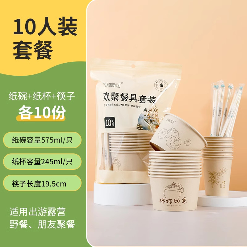 • [종이그릇+종이컵+젓가락] 내추럴 3종세트 10인분