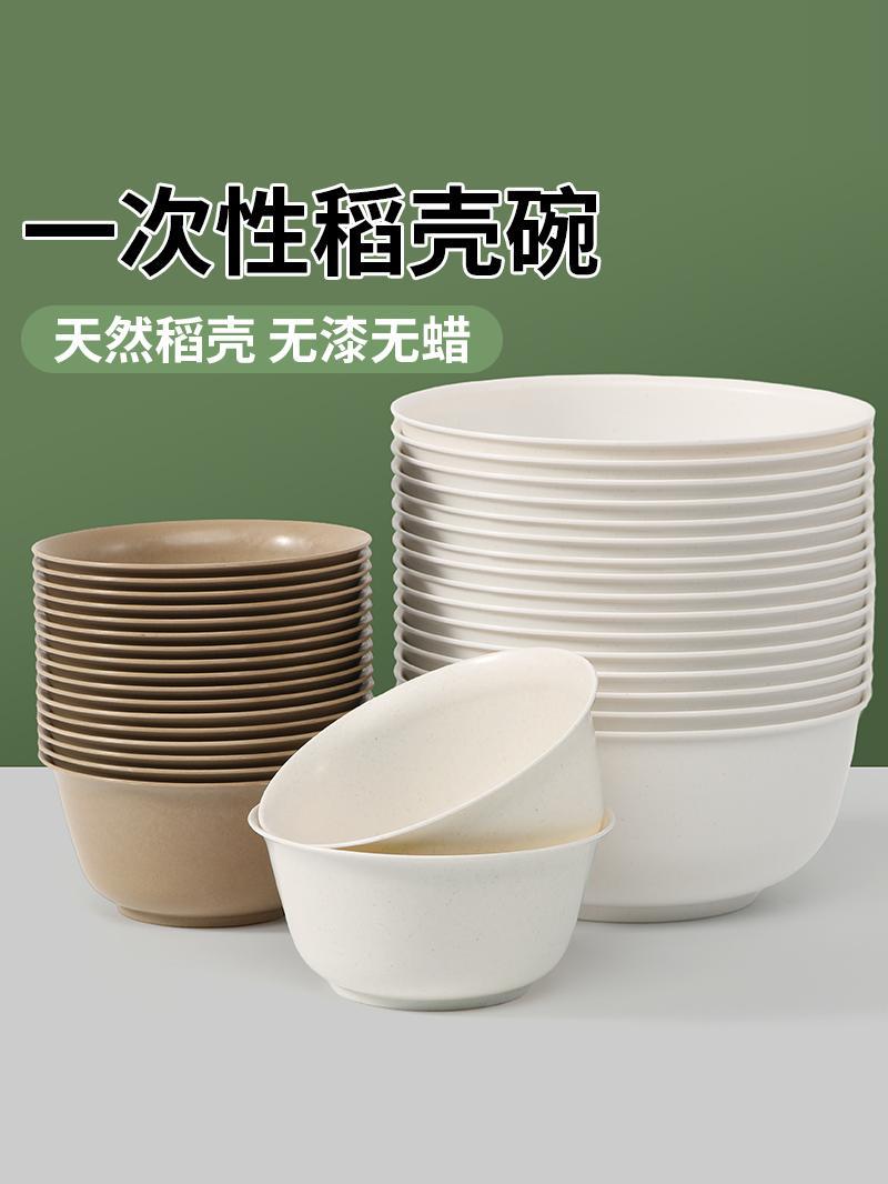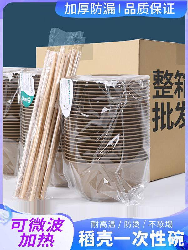 쌀 껍질 일회용 그릇 및 젓가락 세트 식품 등급 가정용 쌀 그릇 중국 설날 결혼식 전체 상자 배치를위한 두꺼운 고온 저항성 국수 그릇