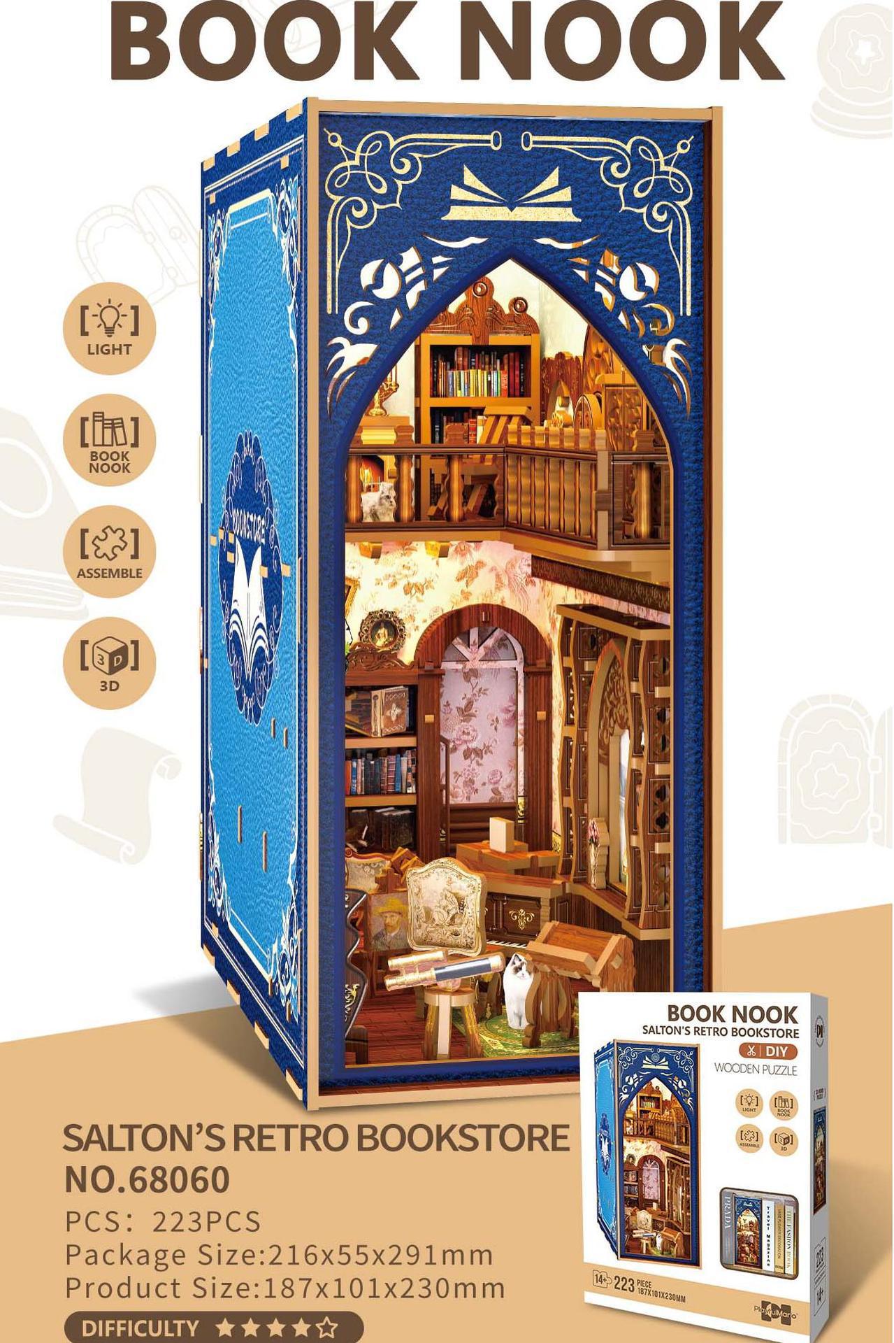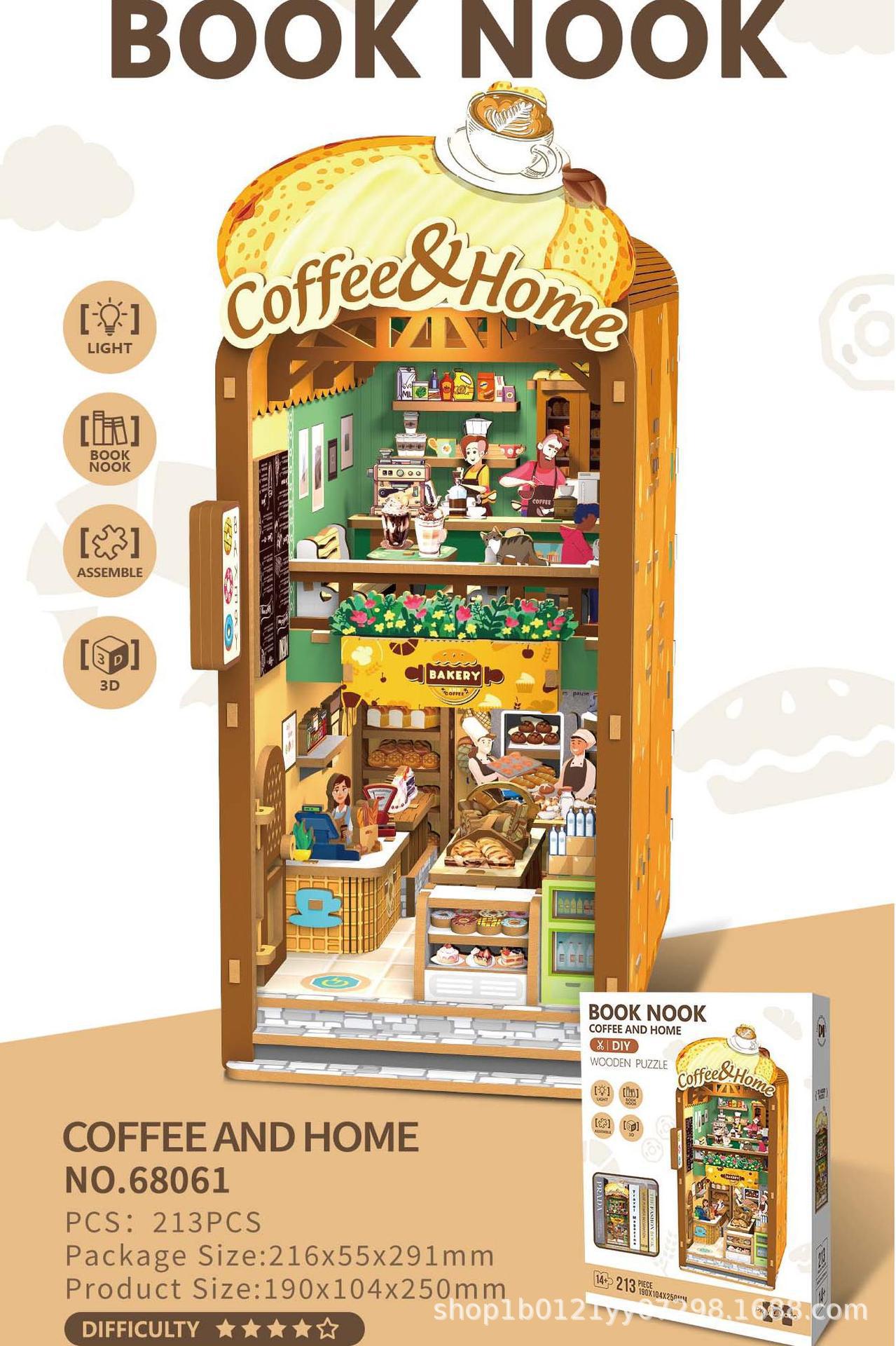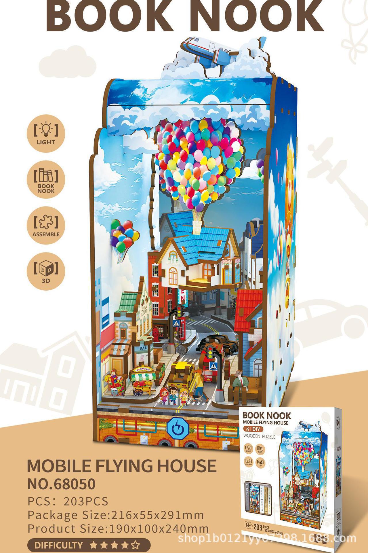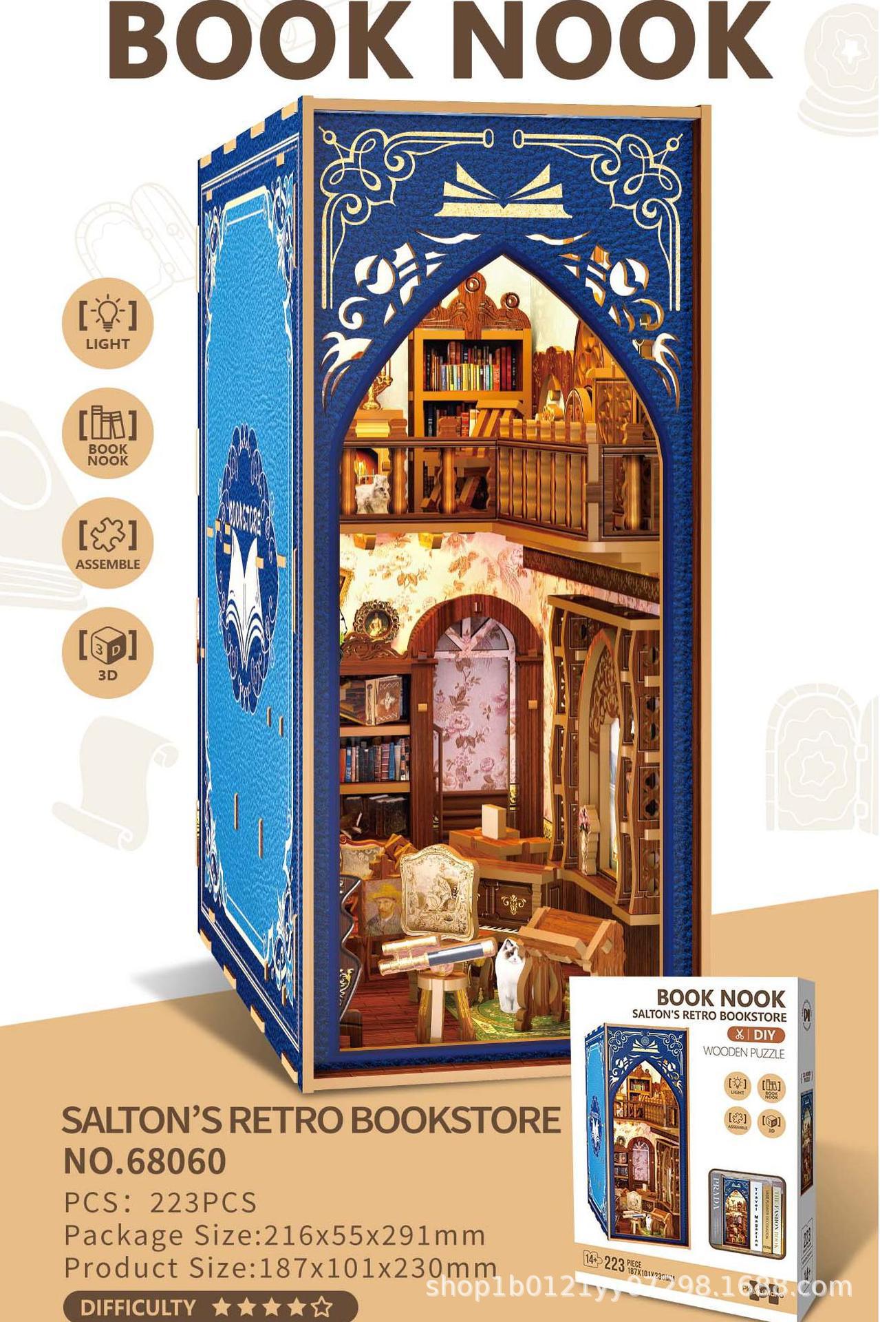 대외 무역 크로스 보더 크리 에이 티브 북 엔드 diy 손으로 조립 된 건물 입체 소형 목조 주택 모델 장식품 장난감 선물스토어 가기