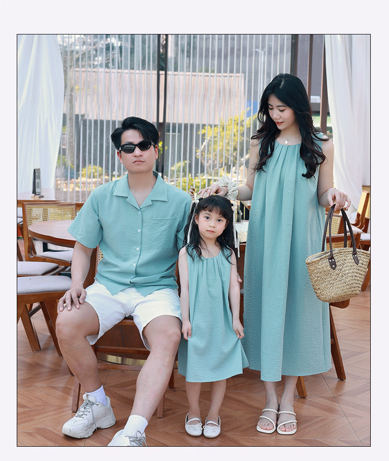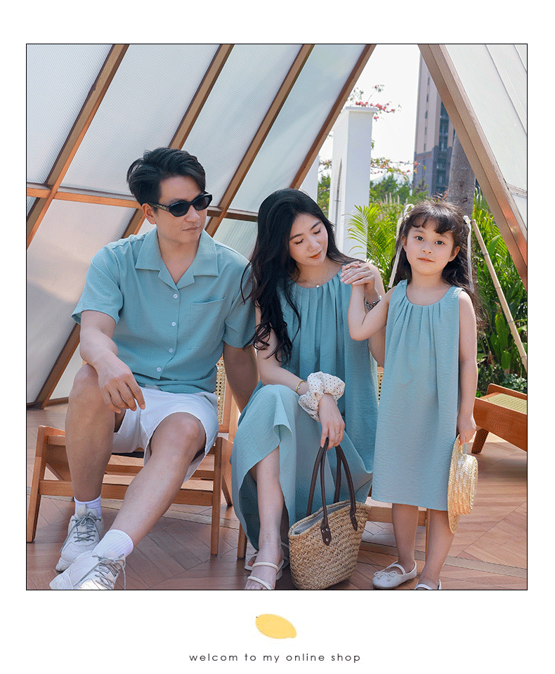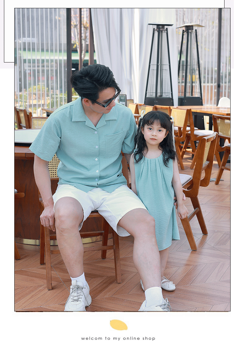 사이버 축하 Parin-Child 세트 원피스 해변 휴가 하이 스타일 해변 어머니-딸 긴 원피스 커플 셔츠 아동복 짧은 소매