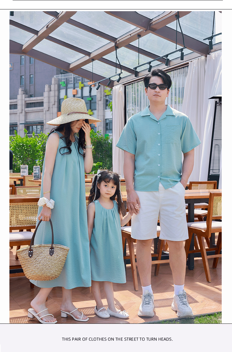 사이버 축하 Parin-Child 세트 원피스 해변 휴가 하이 스타일 해변 어머니-딸 긴 원피스 커플 셔츠 아동복 짧은 소매스토어 가기