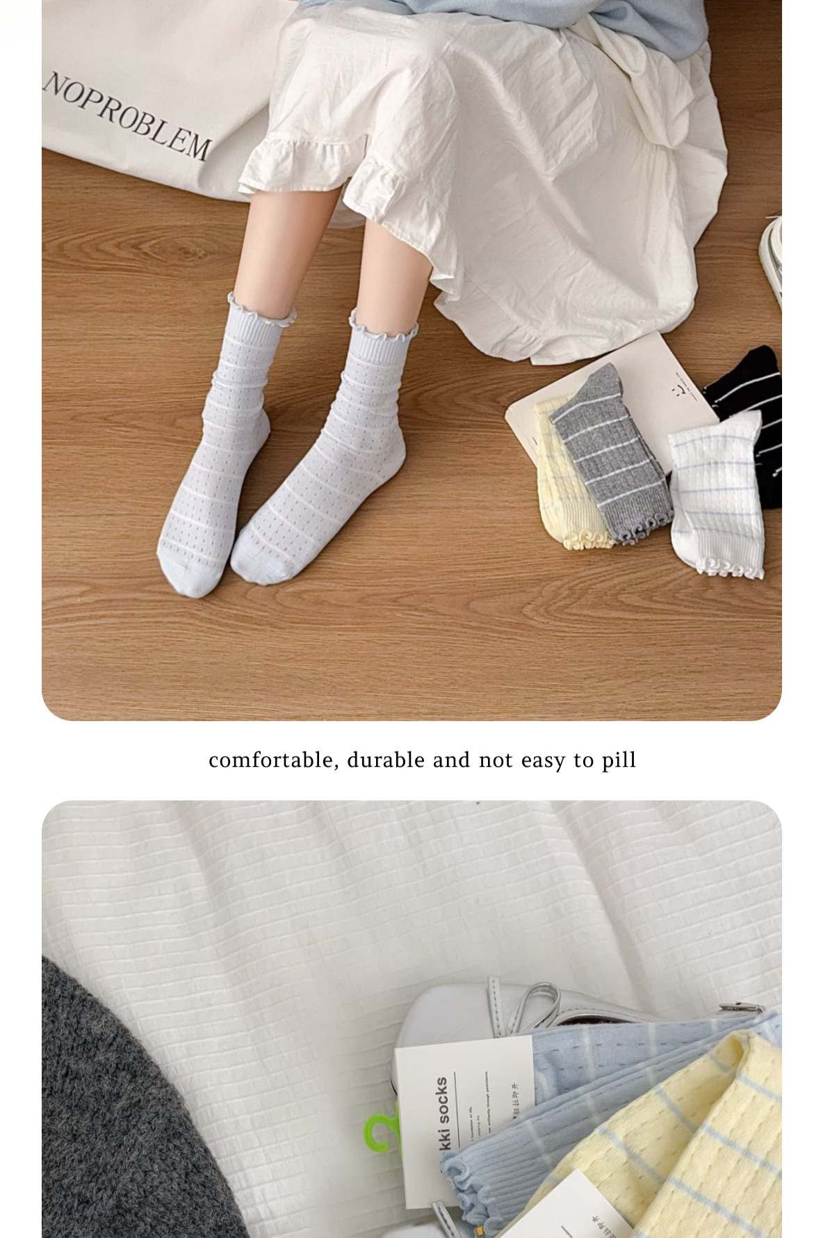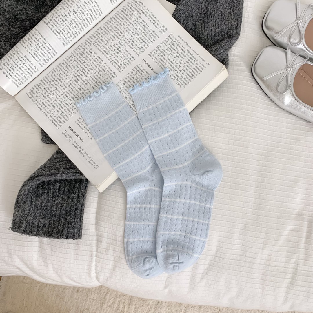 Mekki 양말 여성 여름 얇은 중반 송아지 양말 통기성 곰팡이 줄무늬 양말 ins 유행 Zhuji 양말스토어 가기