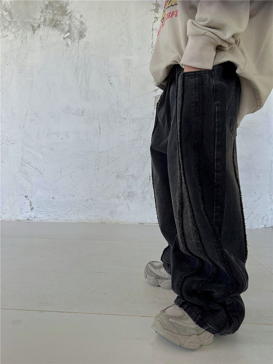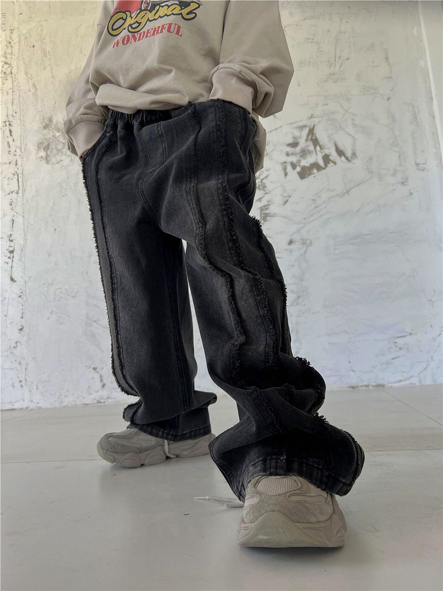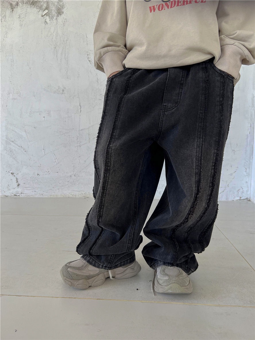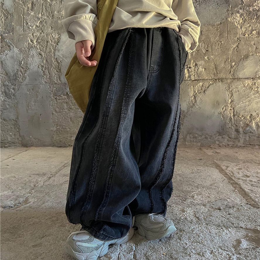 봄, 가을 남아 및 여아용 청바지, 유아용 패셔너블한 아동용 맞춤형 트렌디 브랜드 패셔너블한 인터넷 연예인 로우 엣지 루즈 와이드 팬츠스토어 가기